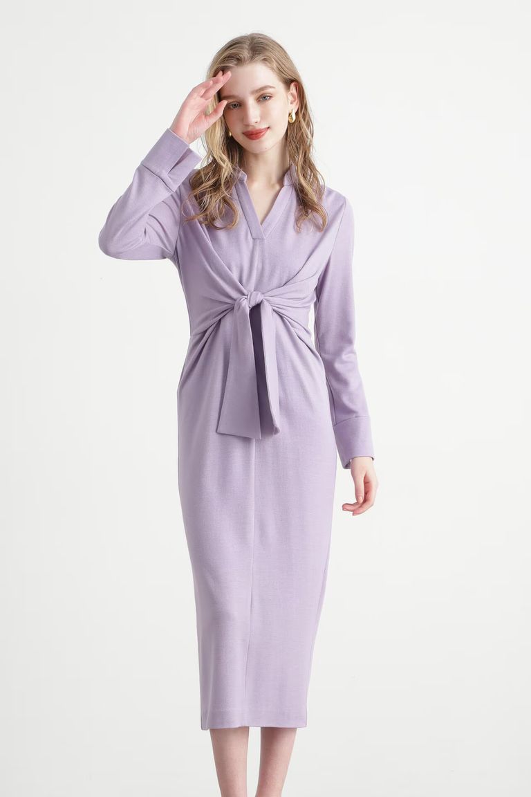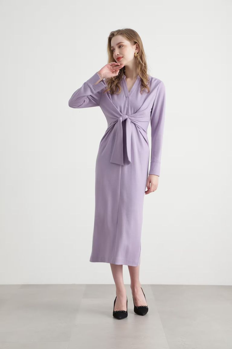 ウエストリボンジャージワンピース (パープル) / ウール / ストレッチ / キャミワンピ付き / 0315140213