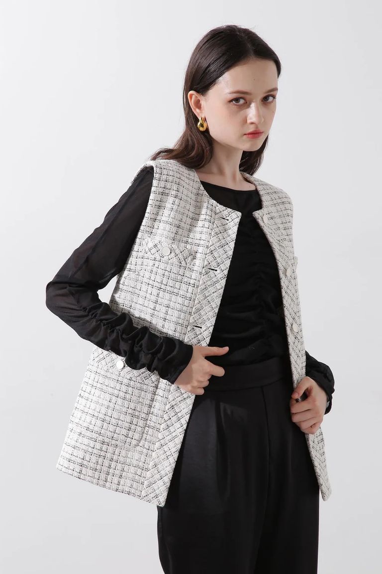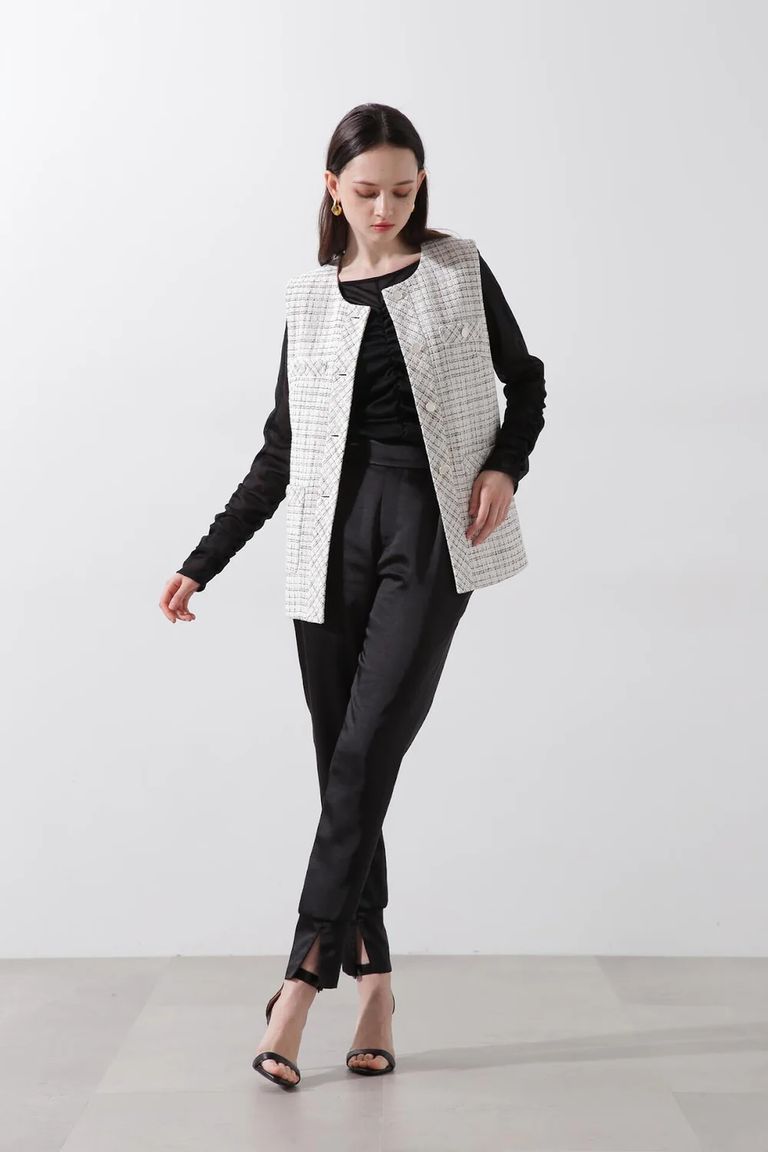 ツイードジレ (ホワイト) / 綿 / ポリエステル / ボタン / 0315150205