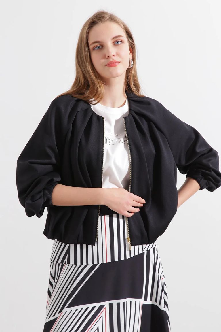 ダンボールノーカラーブルゾン (ブラック) / ポリエステル・ポリウレタン / ストレッチ / 0315150303