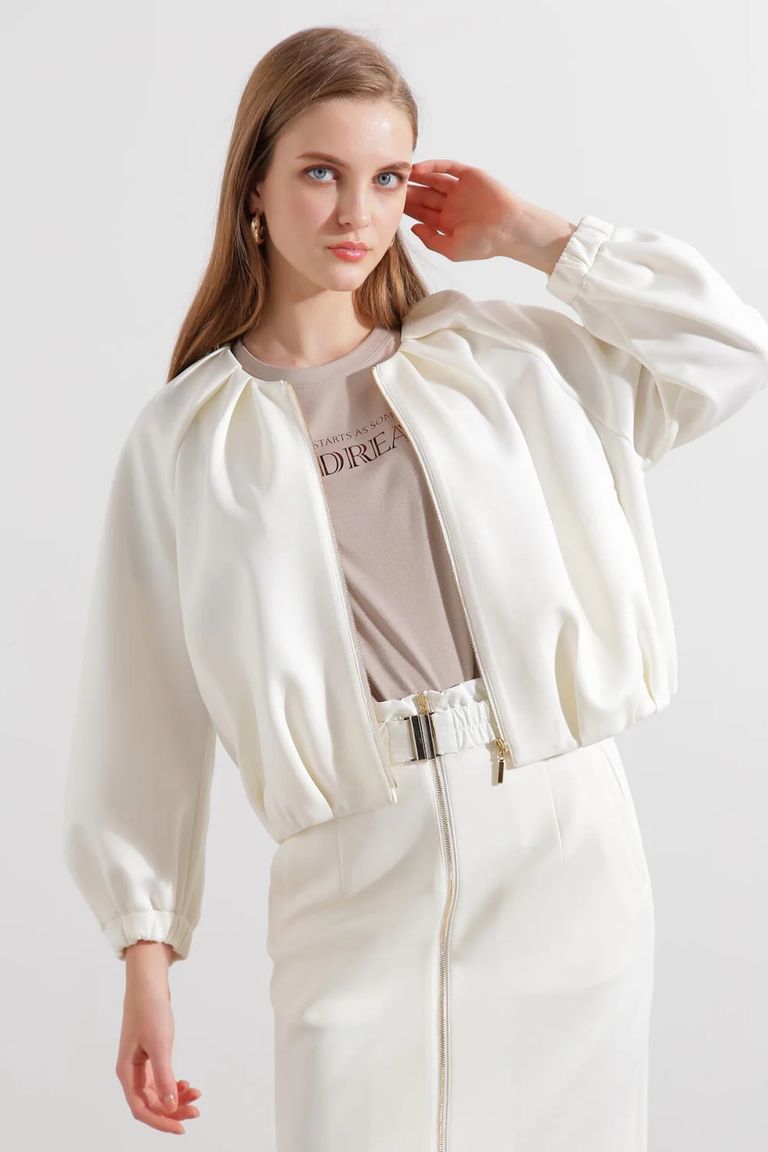 ダンボールノーカラーブルゾン (ホワイト) / ポリエステル・ポリウレタン / ストレッチ / 0315150303