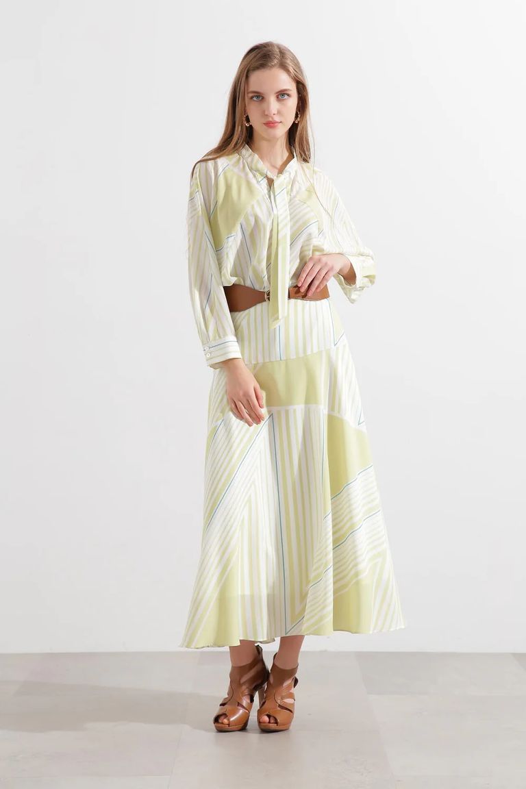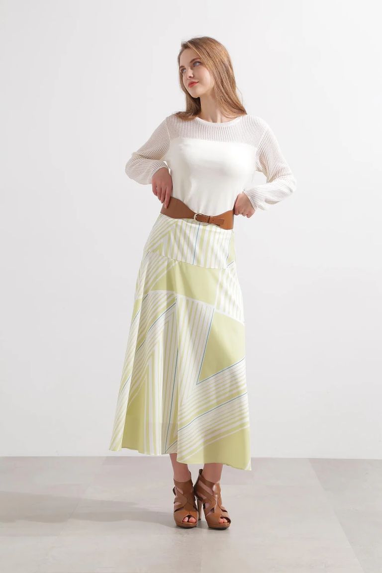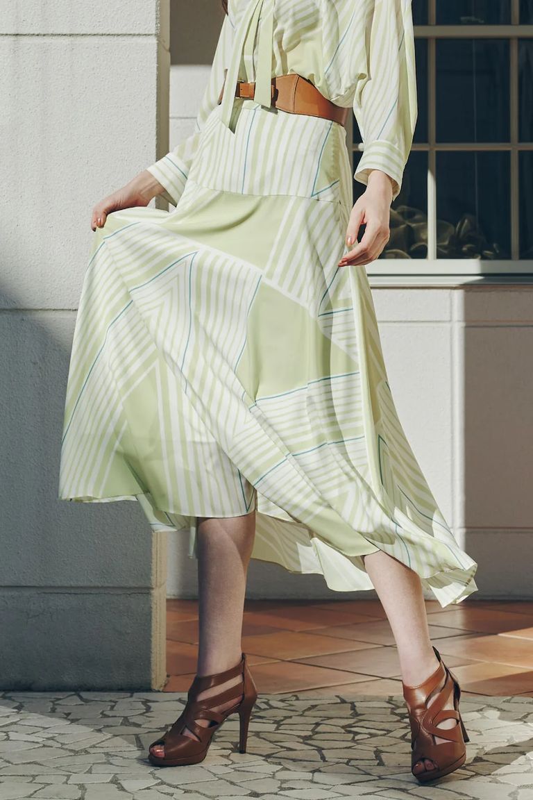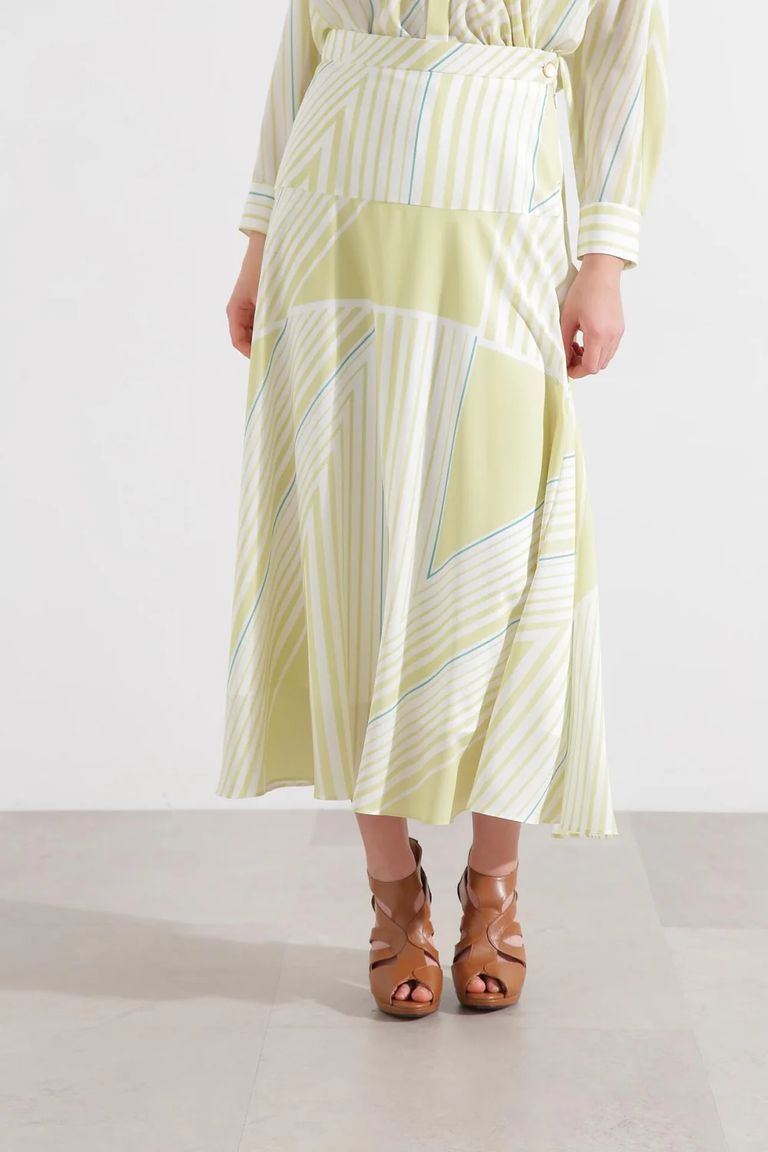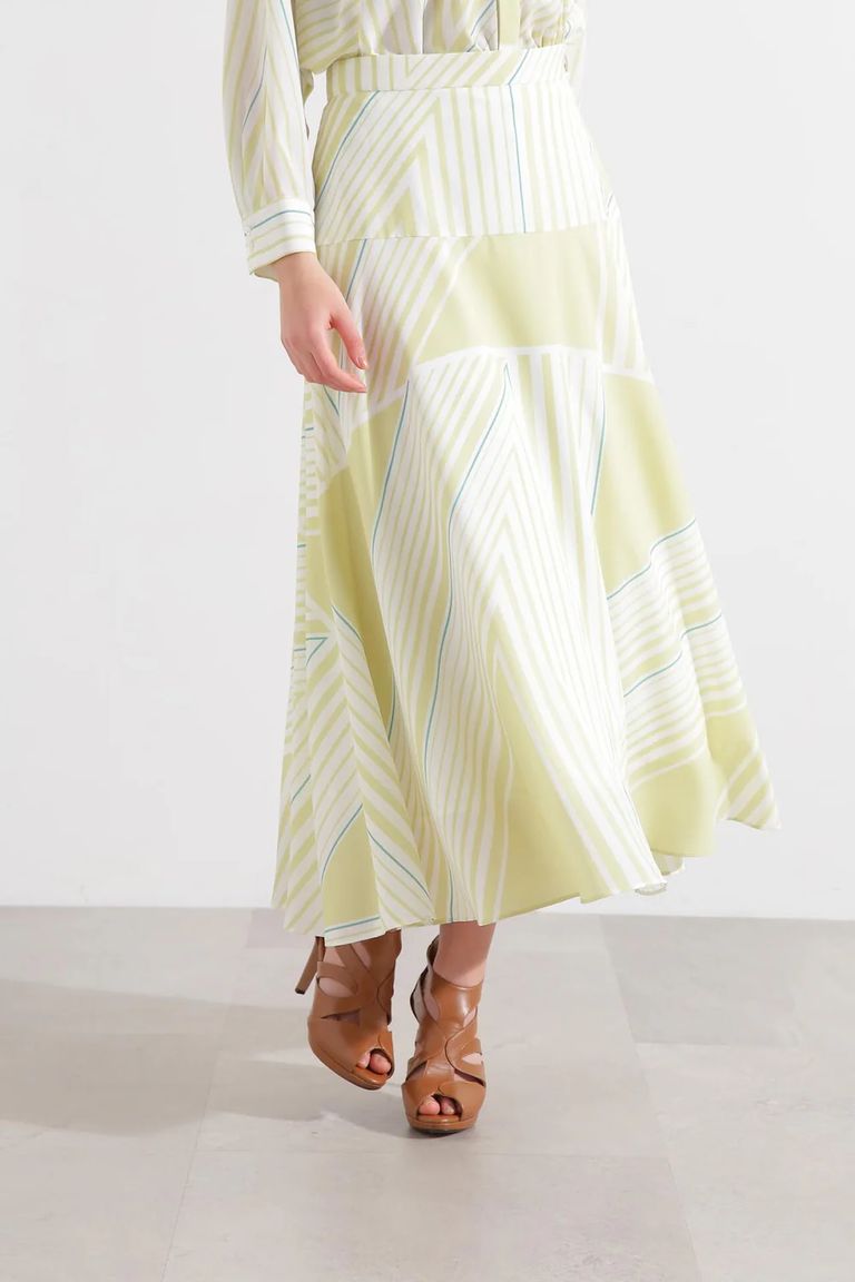 トライアングルボーダープリントスカート (イエロー) / ポリエステル 100% / ウォッシャブル / セットアップ / 0315120311
