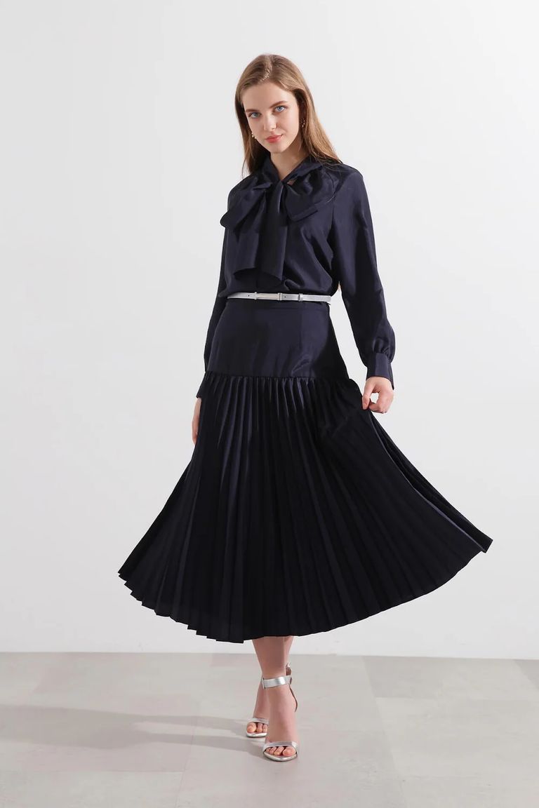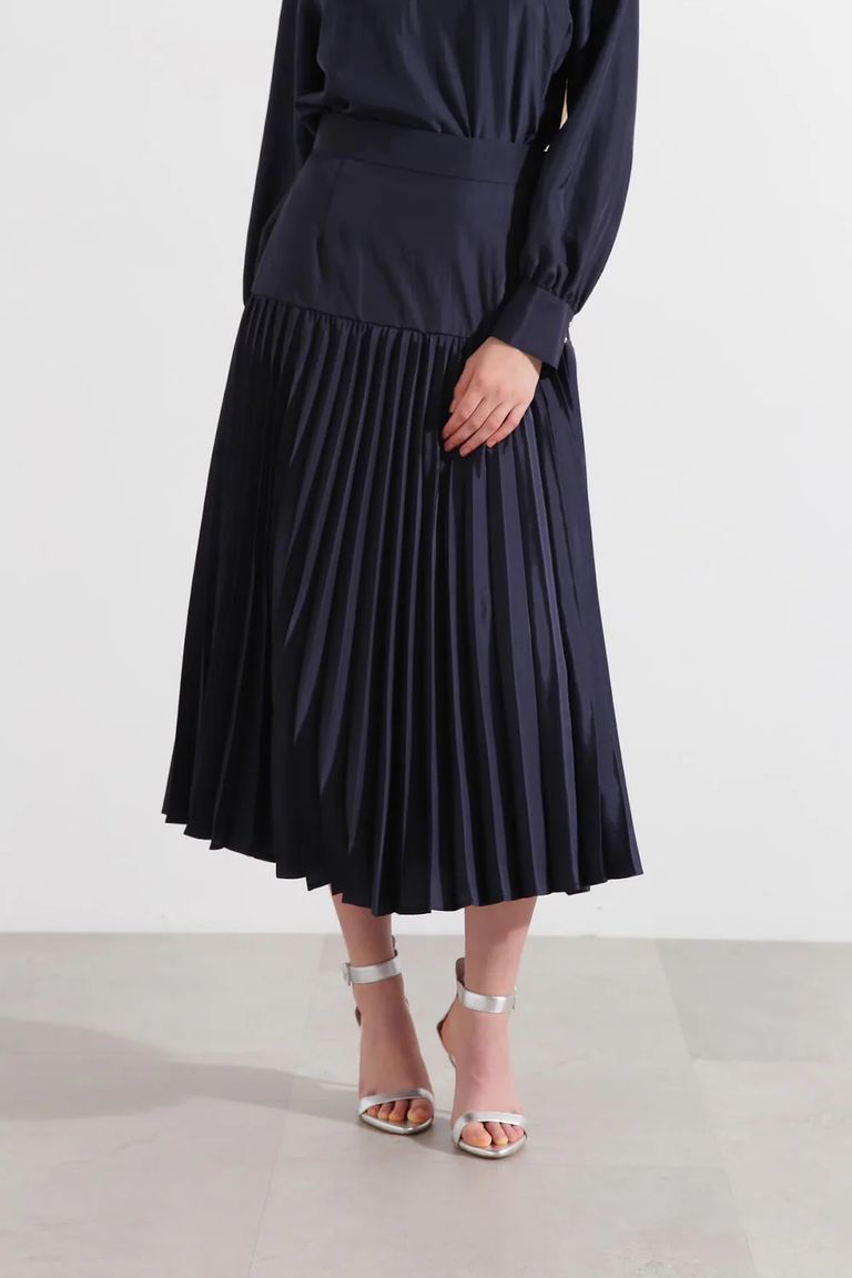 ヨークプリーツスカート (ネイビー) / ポリエステル 100% / 0315120220