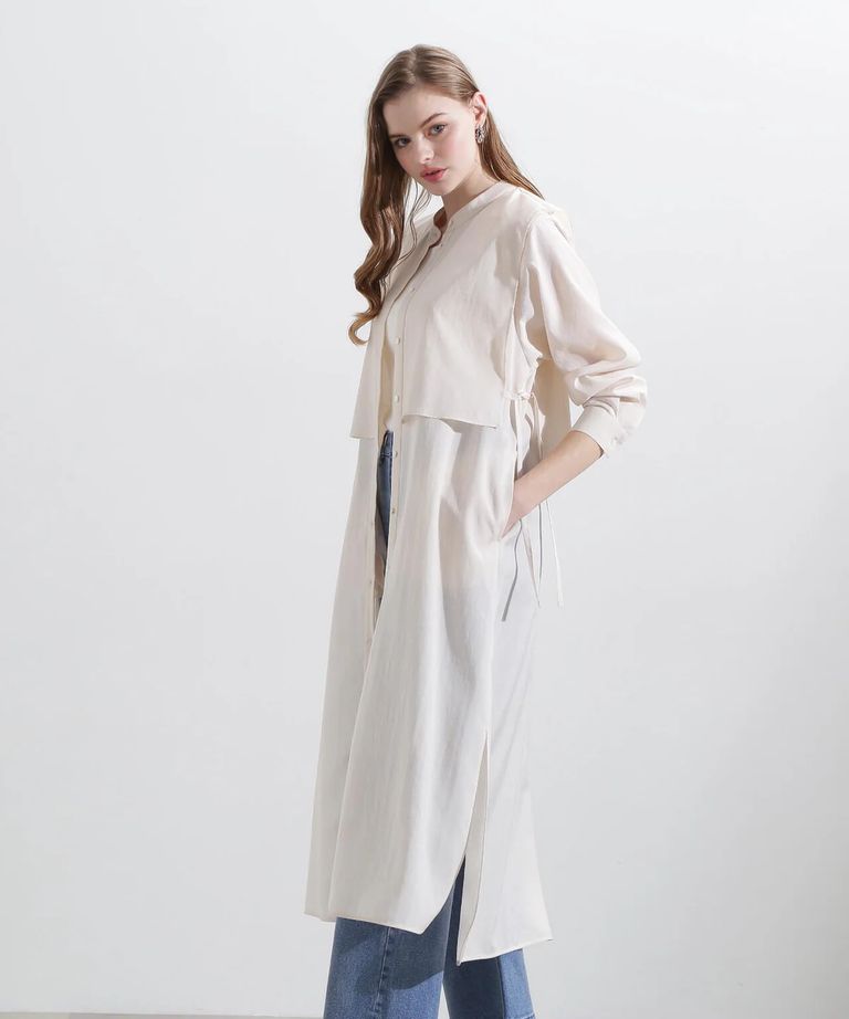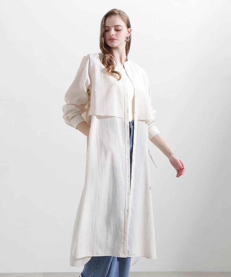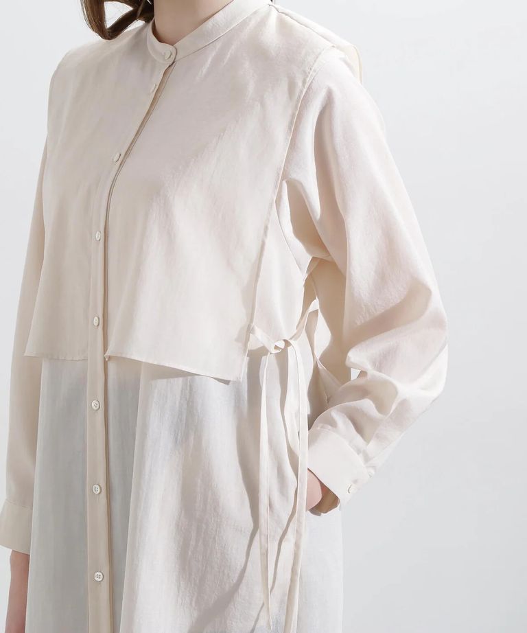レイヤードシャツワンピース (ベージュ) / ポリエステル 100% / ウォッシャブル / 0315140305