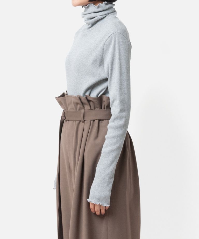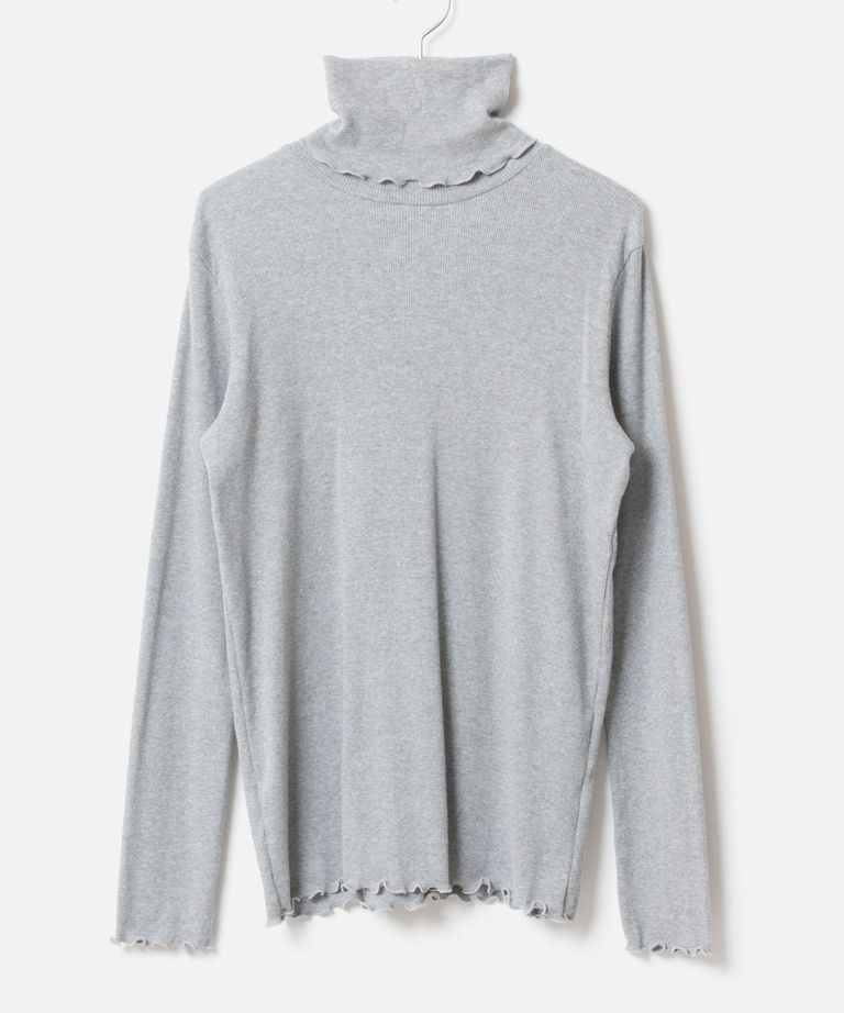 [Harriss × Keiko Okamoto] Cut-rib long turtleneck sweater (Gray) 綿 / ロングタートルネック / メローロック / 手洗可 / OK252-45231