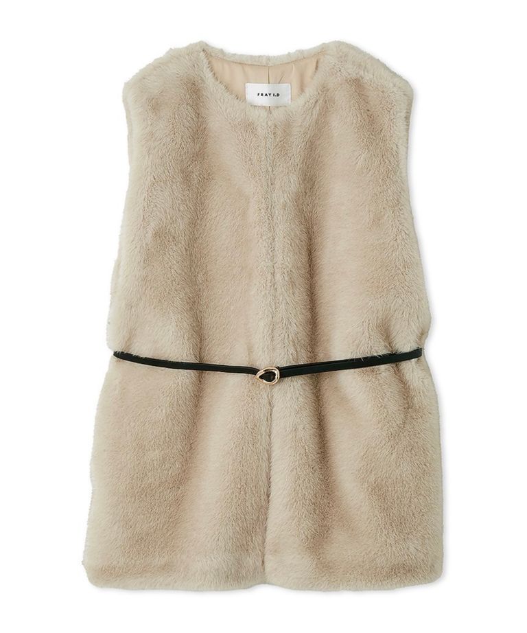 【リアルなフェイクファーをスタイリッシュなジレに。ベルト付きでレイヤードも自在に】