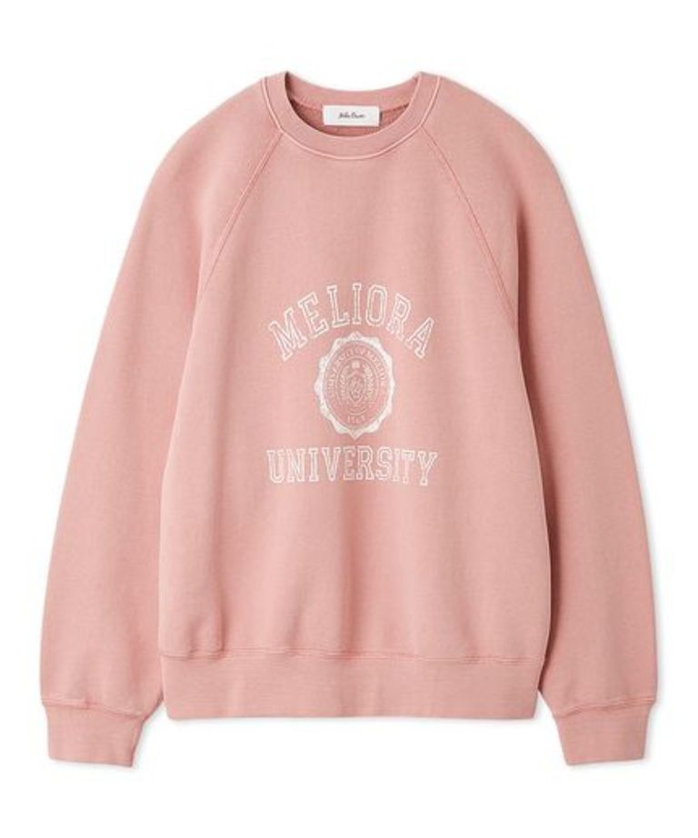 ヴィンテージライクカレッジロゴトレーナー(PNK)綿 / ヴィンテージ風プリント / 手洗可 / 09WCT254158