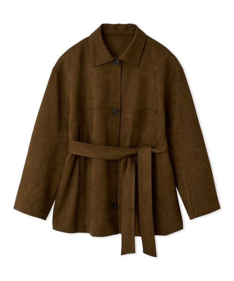 ステンカラーリサイクスウェードライクブルゾン(BRW)ポリエステル / フェイクスウェード / ポケット付き / 共布ベルト付き / 09WFJ254145