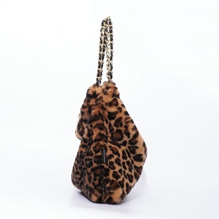 エコファートートバッグ(Leopard beige(Black) ) ポリエステル / マグネット開閉 / チェーンショルダー / V-8924