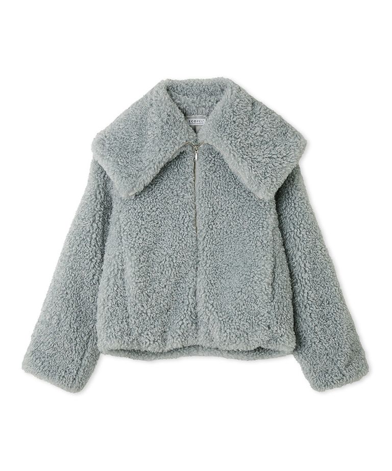 ECOPELビッグカラーショートジャケット ( LBLU) ポリエステル / 毛足が長めのファー / ZIP / 極上の手触り / FWFJ254075