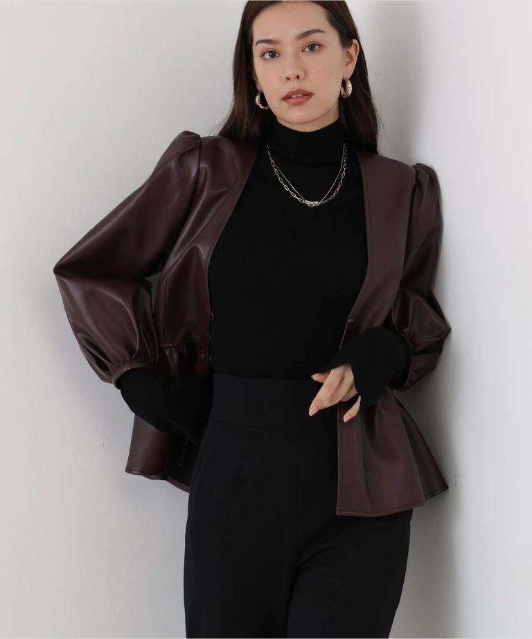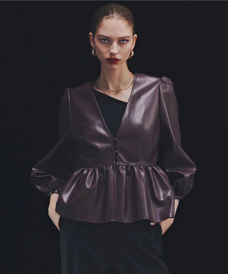 フォーレザーペプラムブラウス(ボルドー)合成皮革 / 0315210001