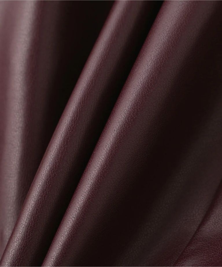 細やかな表面感とレザー特有の上品な光沢があり、レザー見えする高級感のある仕上がりです。2WAYストレッチ性を備えており、快適な着心地と美しいシルエットを両立します。