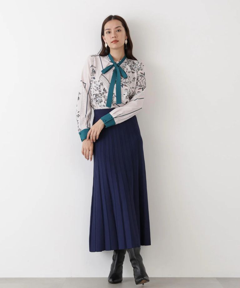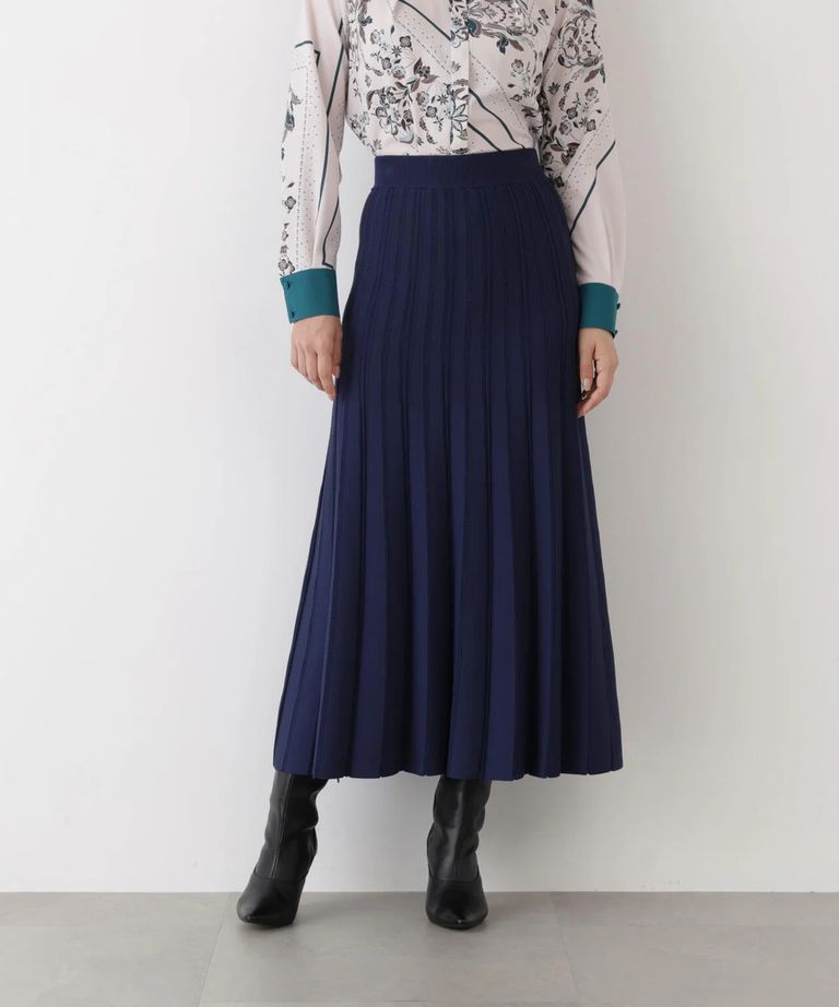 ニットプリーツフレアースカート(ネイビー)レーヨン / 0315227027