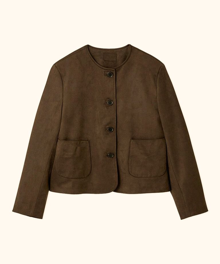 パッチポケットコンパクトスエードジャケット ( DBRW) ポリエステル / ボタン / クルーネック / ボックスシルエット / 09WFJ254049