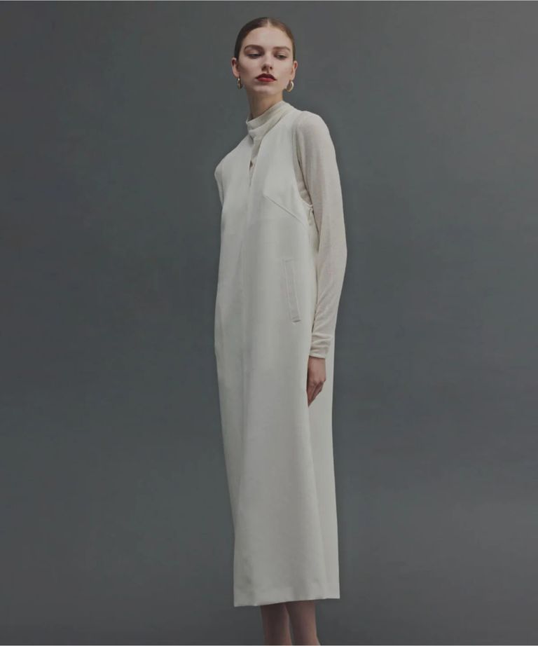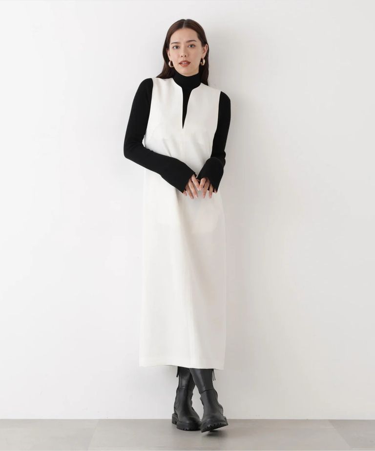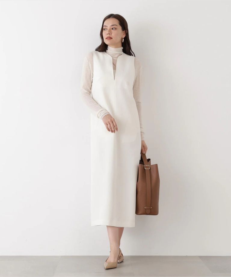 キーネックジャンパースカート(エクリュ)レーヨン / ポケット付き / サイドジップ / 手洗可 / 裏地あり / 0315240031