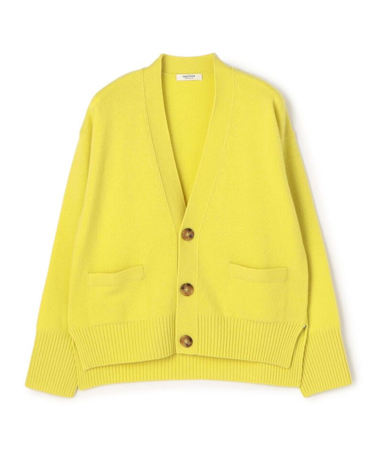 NZ LAMBS Vネックカーディガン ( イエロー ) ウール / ドロップショルダー / 伸縮性有り / 柔らかい / 12-02-54-02205