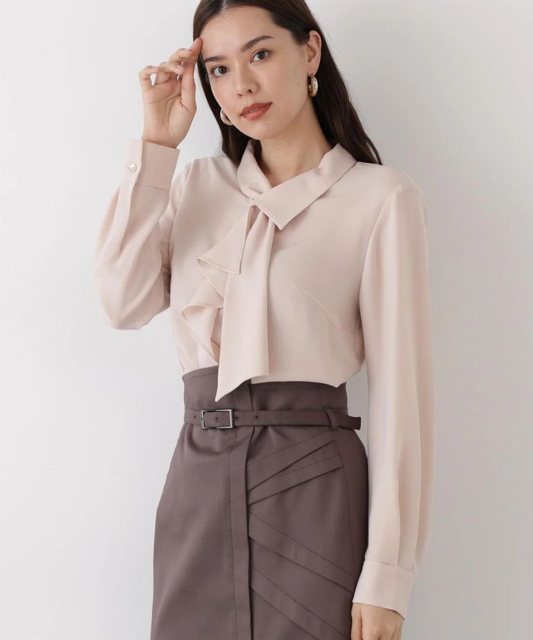 ラッフルボウタイブラウス(ピンク)トリアセテート / 0315210022