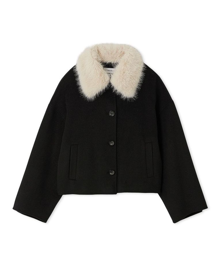 2wayファーカラーリバーショートコート ( BLK ) 羊毛 / ファー襟取外し可能 / 大きめボタン / ビーバー加工 / 09WFC254109