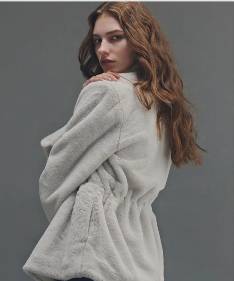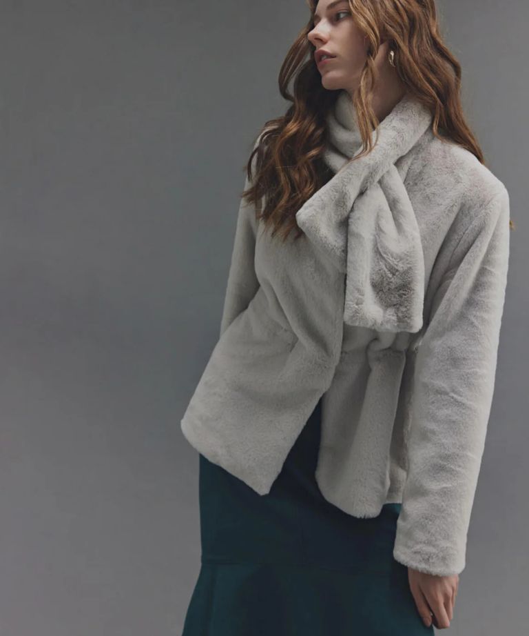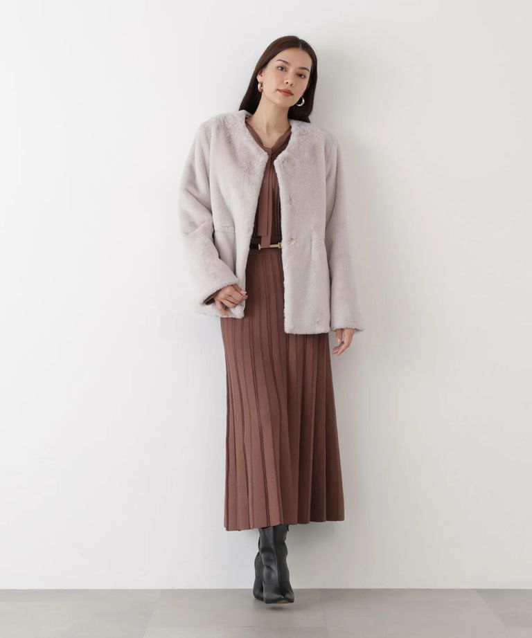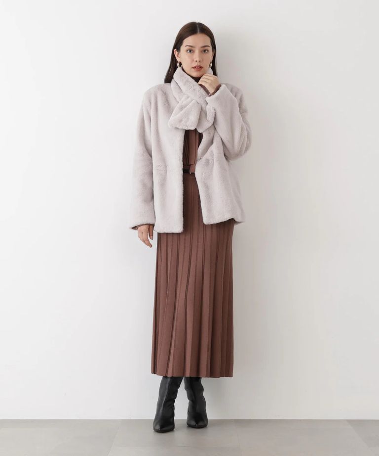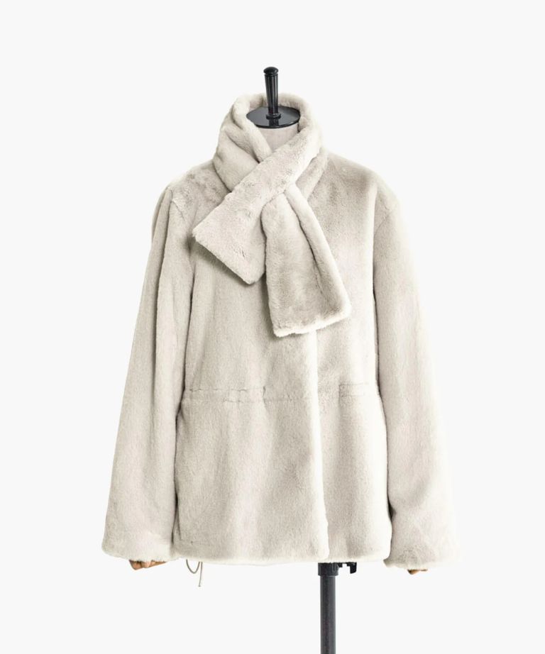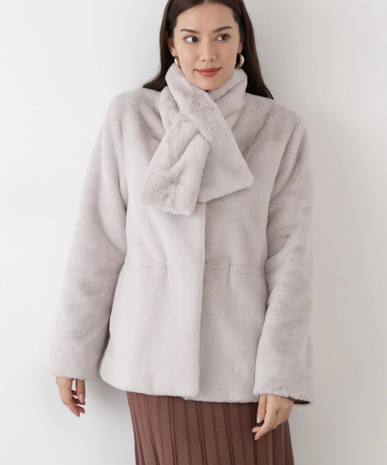 短毛のフォーファーで仕立てたショートコートとティペットのセットアイテム。