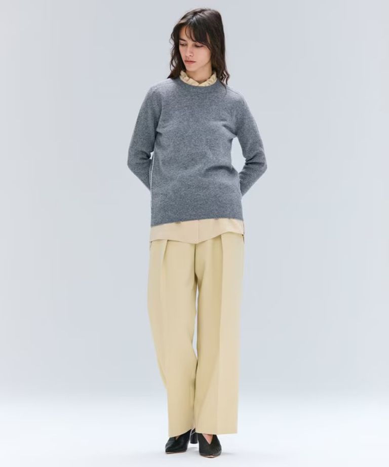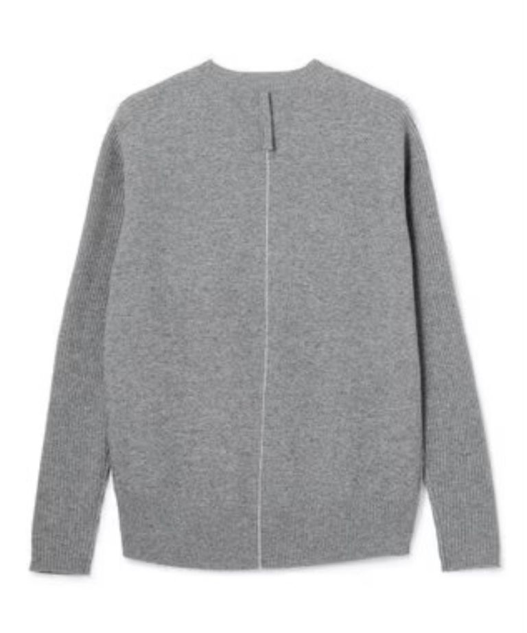 POMPE / ウールカシミヤ配色ラインクルーネックニット ( Charcoal×Off ) ウール / 手洗可 / カシミア混 / KRCWGW0400