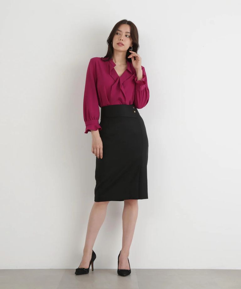 ワイドベルト付きスカート(ブラック)ポリエステル / ウォッシャブル / 手洗い可 / 0315220913