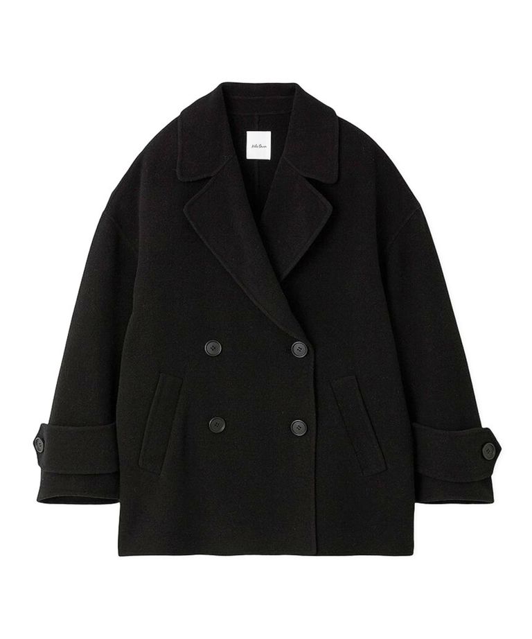 コクーンシルエットピーコート( BLK ) ウール / リバー仕立て / 軽量 / ミディ丈 / 09WFC254110