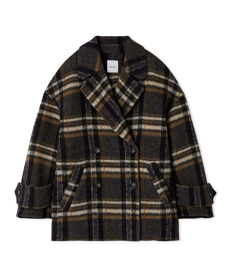 コクーンシルエットピーコート( CHECK ) ウール / リバー仕立て / 軽量 / ミディ丈 / 09WFC254110