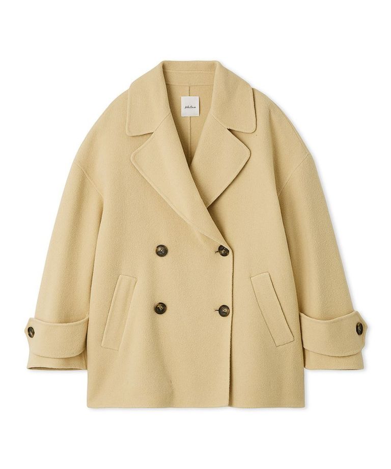 コクーンシルエットピーコート( YEL ) ウール / リバー仕立て / 軽量 / ミディ丈 / 09WFC254110