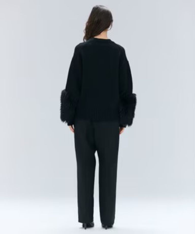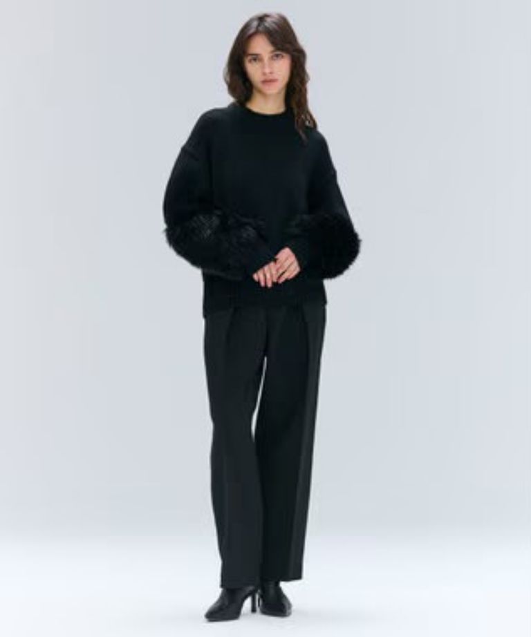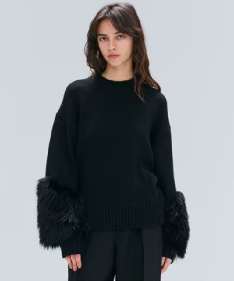 CHESTER / フェイクファークルーネックニット ( Black ) ウール / 袖口フェイクファー / 手洗可 / KRCWGW0405
