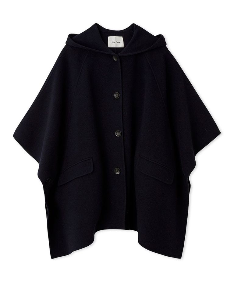 フードポンチョコート( NVY ) ポリエステル / ウール混 / 前あき / ポケット付き/ 09WFC254180