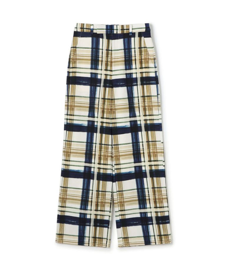 コットンレーヨングログラン ストレートパンツ ( ネイビー系 ) コットン / ハイウエスト / 裏地膝下まで / チェック柄 / 12-04-54-04202