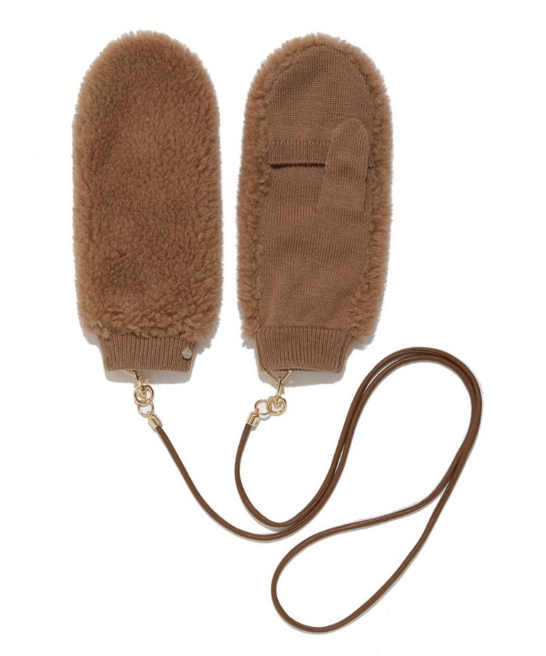 ECOPELレザーストラップ付きミトン ( CML ) ポリエステル / ウール混ボア / スマホ対策 / レザー調コード / FWGG254338