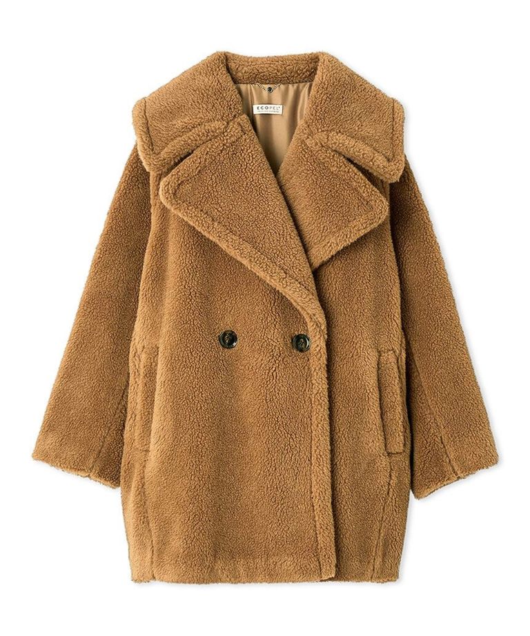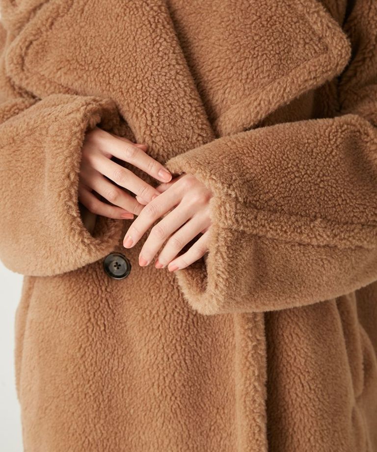 ECOPELボアミドルコート ( CML ) ポリエステル / ウール混ボア / コクーンシルエット / ポケット / FWFJ255024