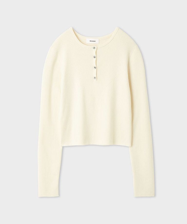 ウールシルク混ヘンリーネックリブニット(ホワイト)ポリエステル / ウォッシャブル / 手洗い可 / MWNT255027