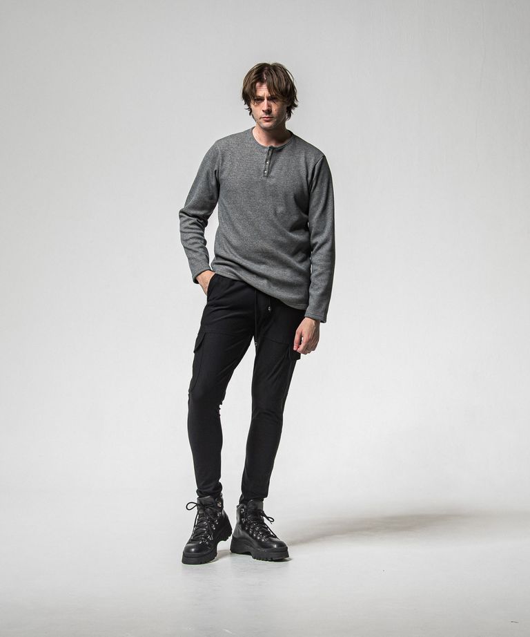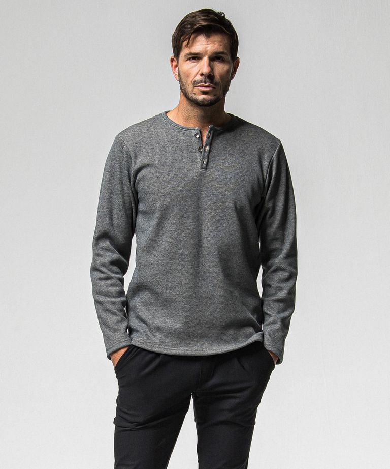 velours fleece thermal HENRY (GREY ) ポリエステル / 裏起毛 / コンチョボタン / 暖かい / RC38-C-003