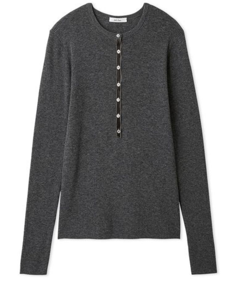 ベロアヘンリーネックリブニット( GRY ) ポリエステル / ベロアテープ / ウール混 / 伸縮性 / 手洗可/ 09WNT255001