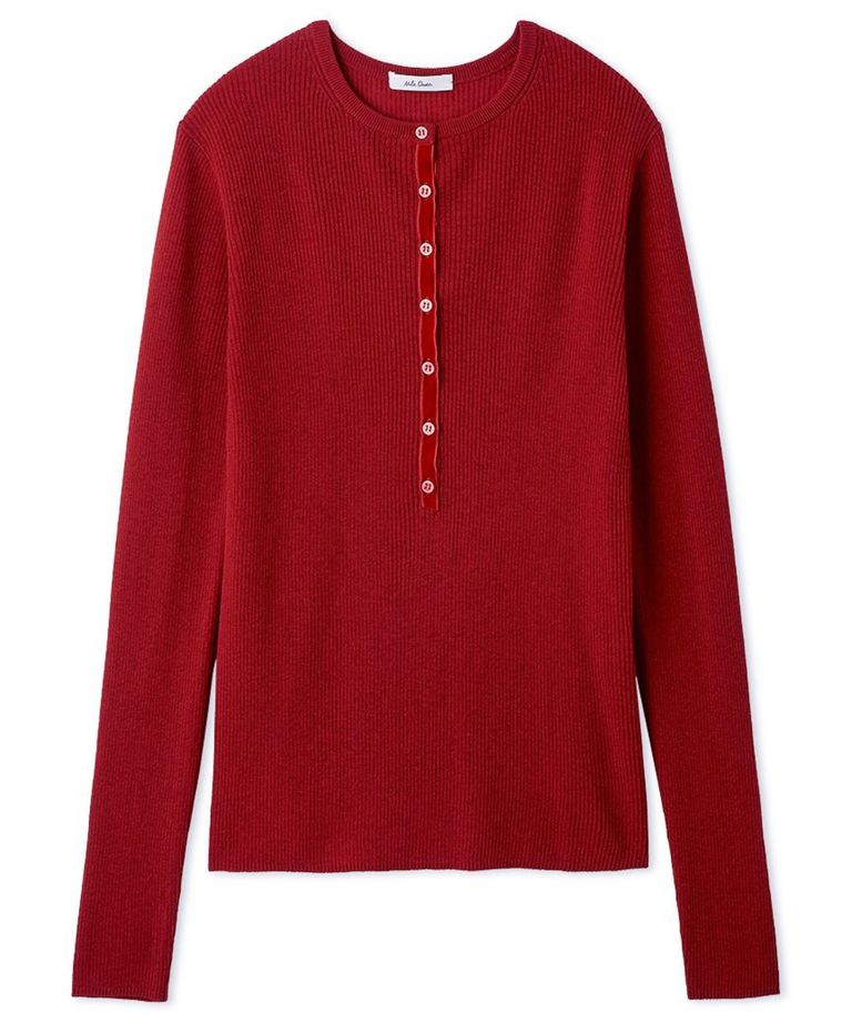 ベロアヘンリーネックリブニット( RED ) ポリエステル / ベロアテープ / ウール混 / 伸縮性 / 手洗可/ 09WNT255001