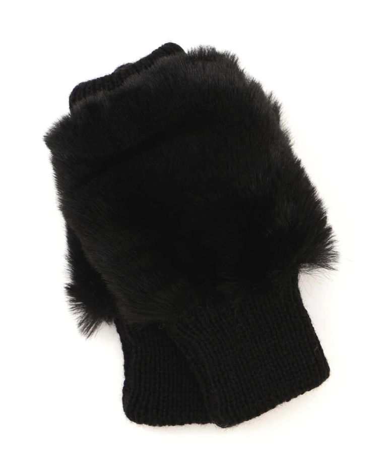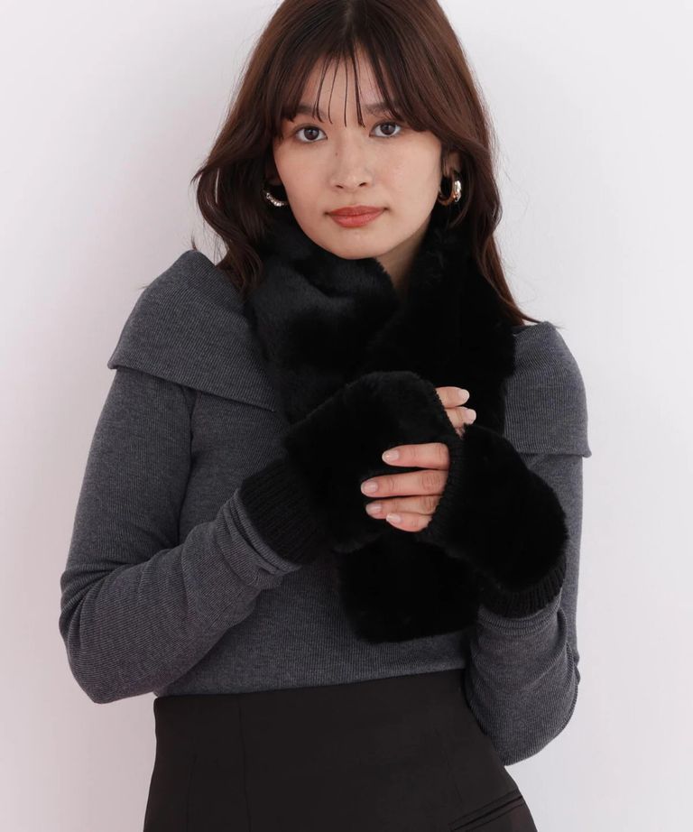 セットのニットグローブは、ショールとおそろいのファーをあしらったデザイン。