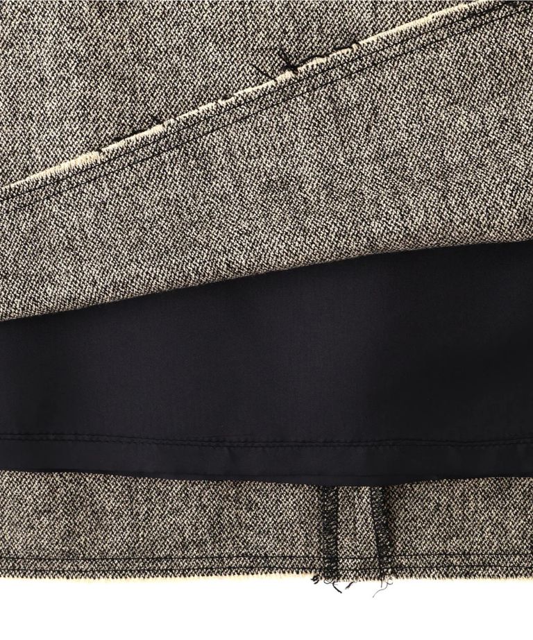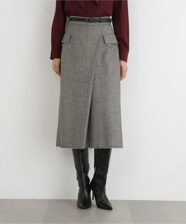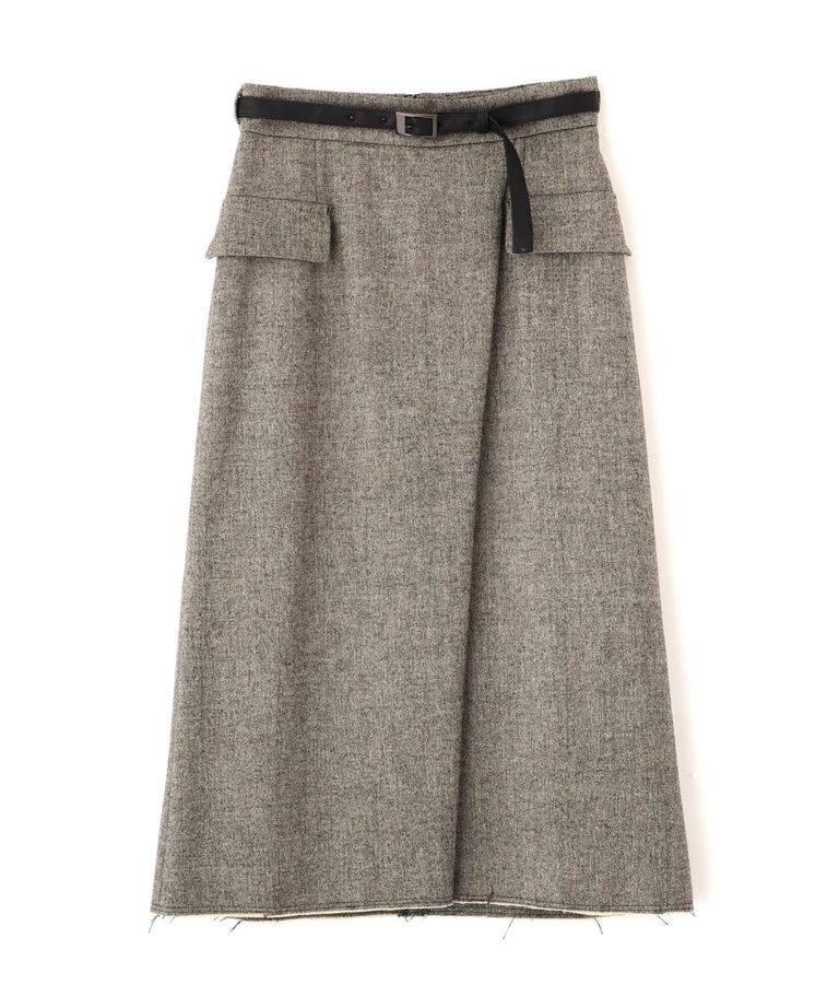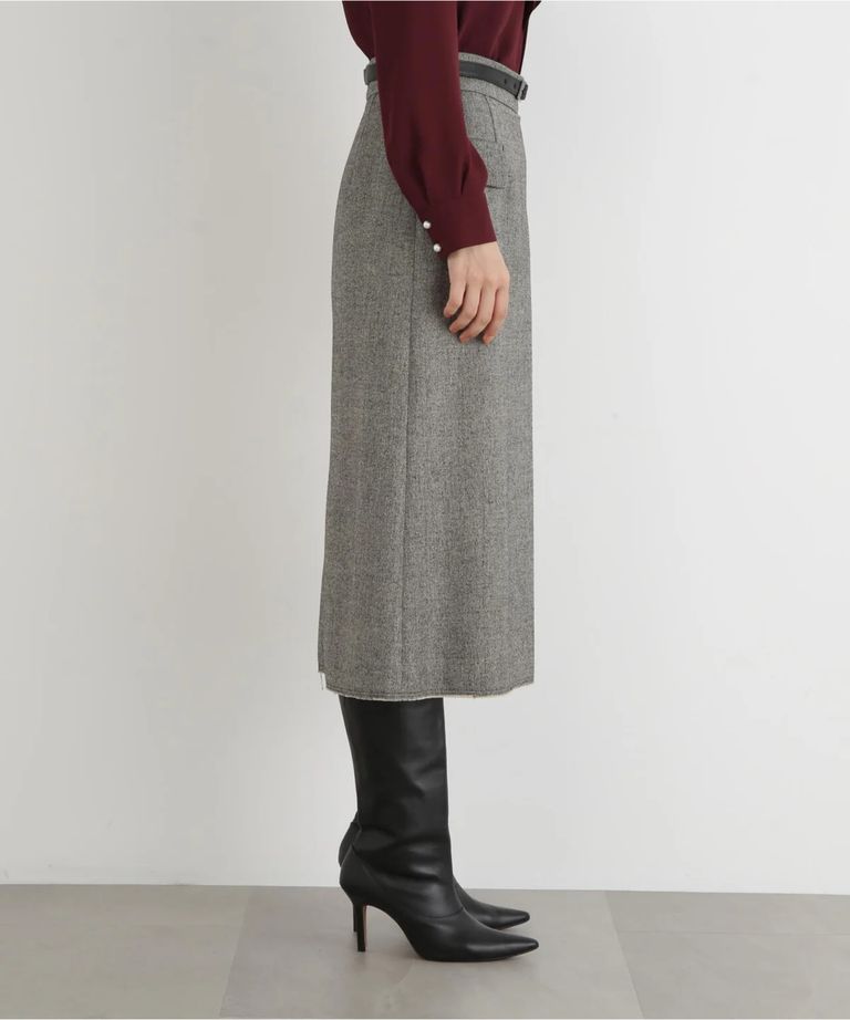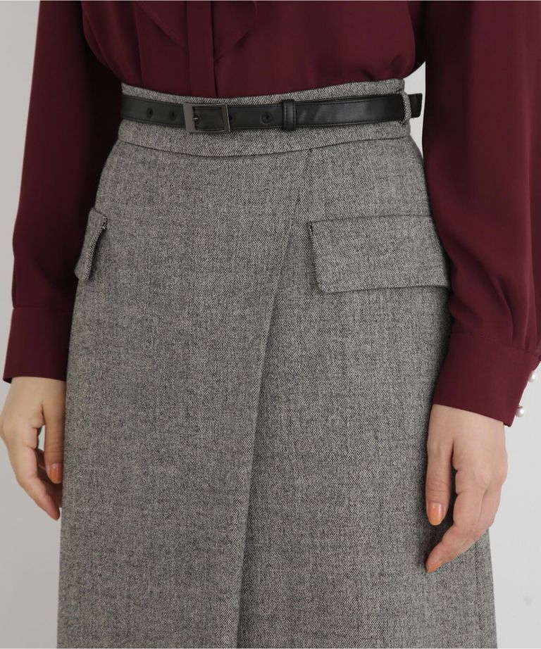 クラシカルツイードレザーベルト付きスカート(ブラック)毛 / 裏地あり / 合皮ベルト付き / 脇ファスナー / 0315220121