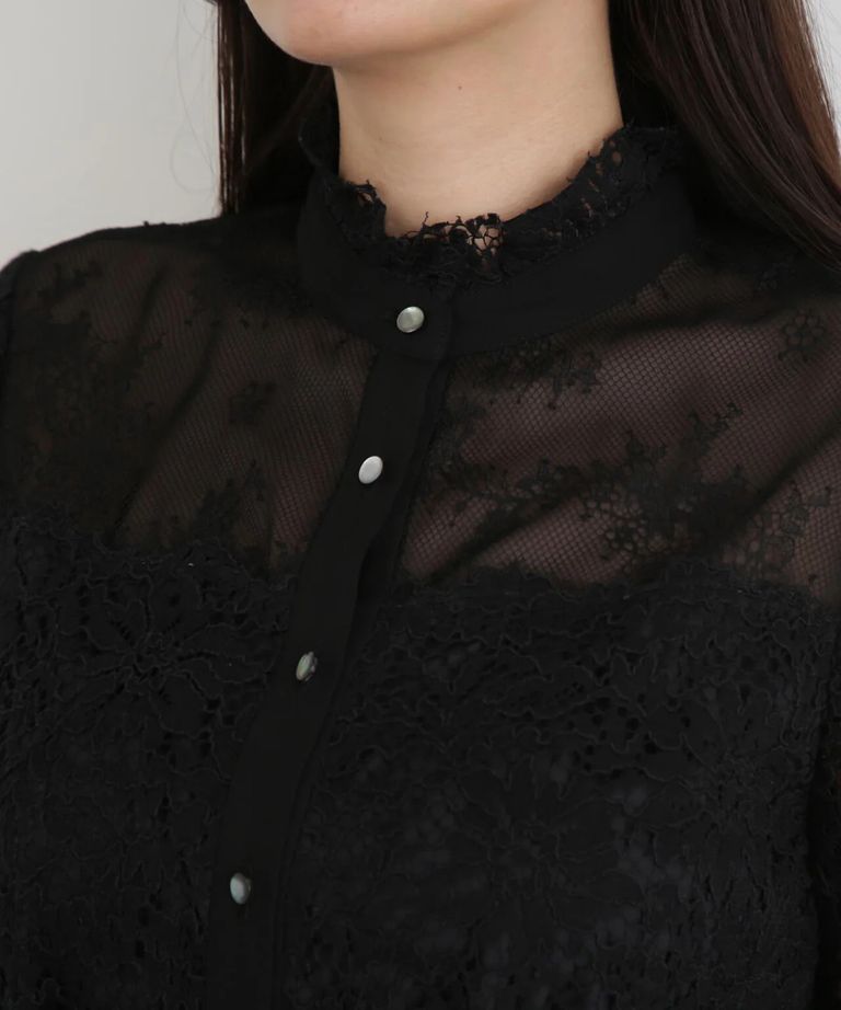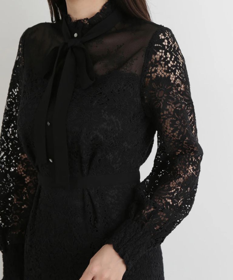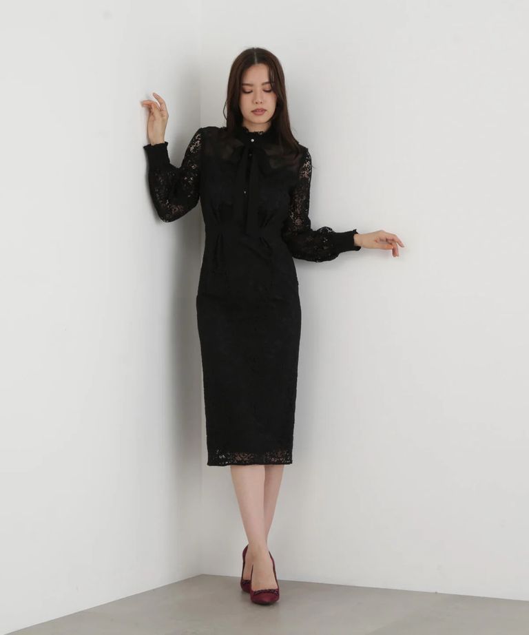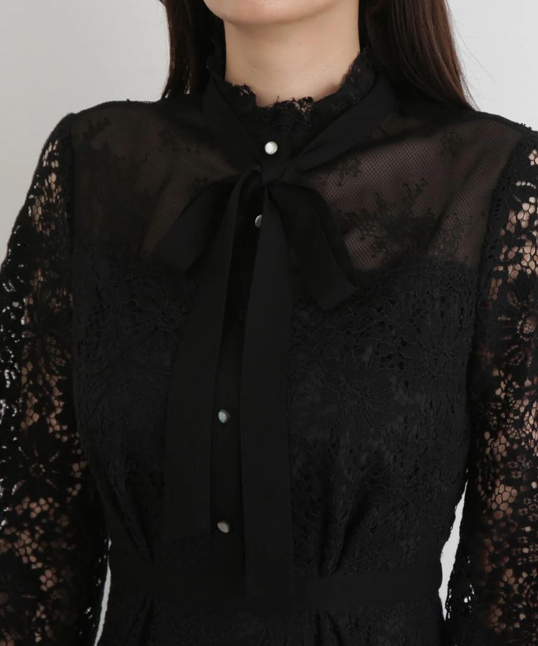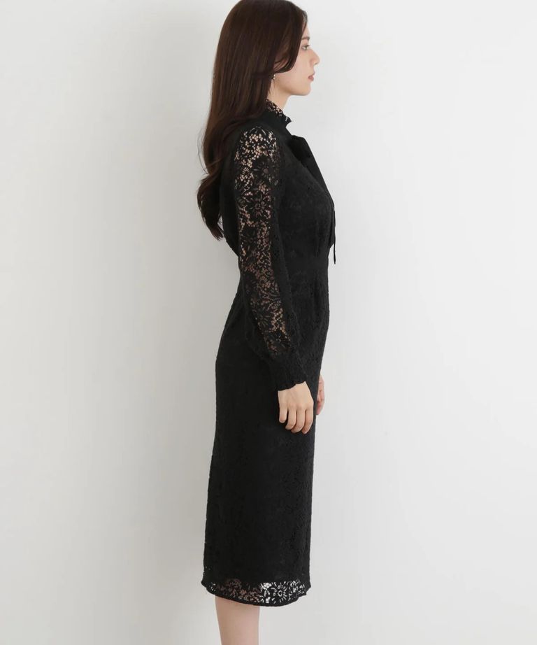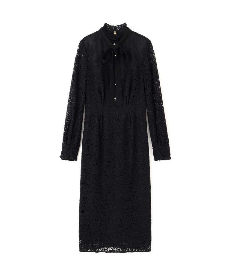 [URBAN PRECIOUS]フローラルレースワンピース(ブラック)コットン / 裏地つき / 袖口シャーリング / 後ファスナーあき / 後にベンツあり / 0315240124