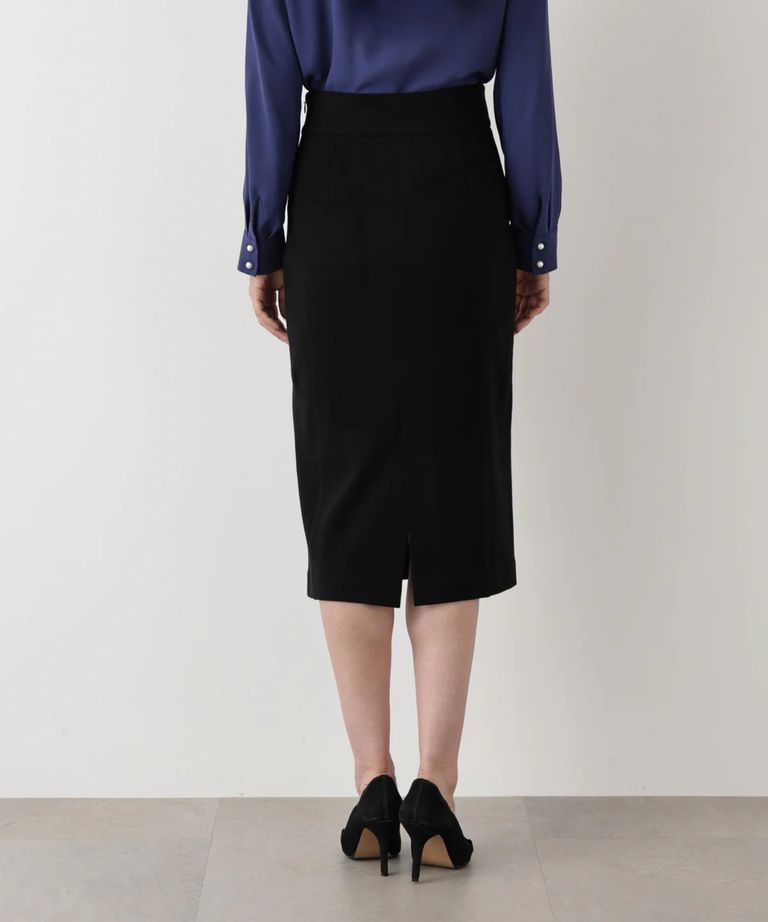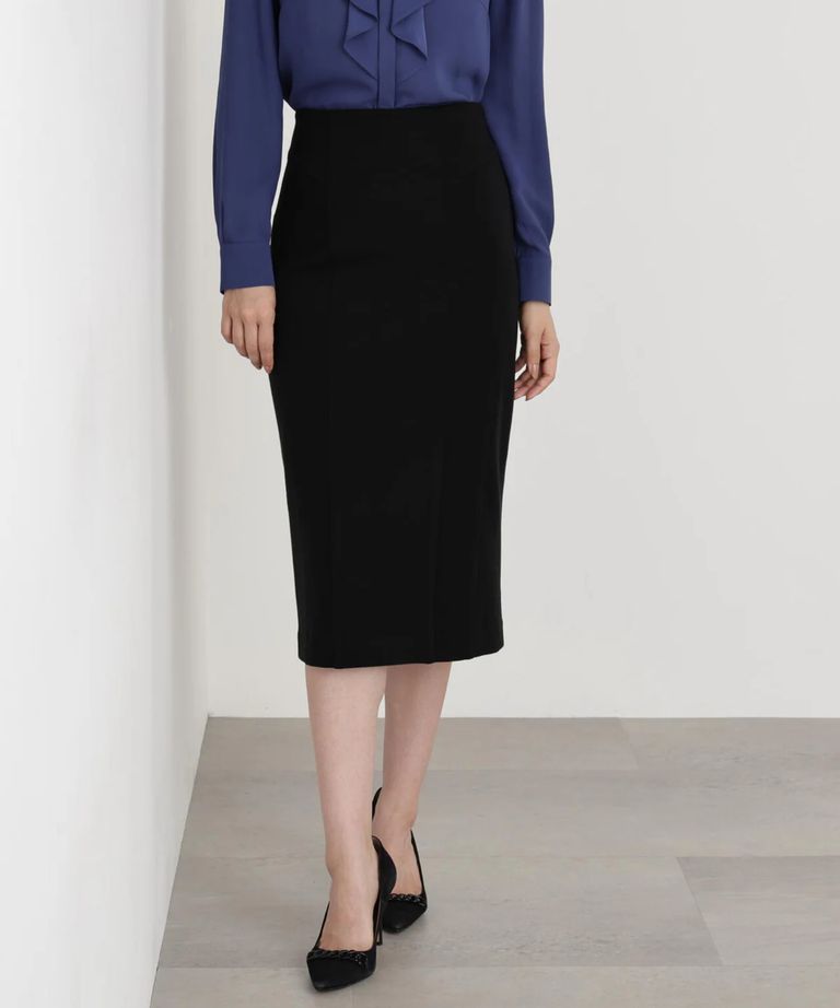 ウールスムースカッティングタイトスカート(ブラック)アクリル / ストレッチあり / 裏地付き / 左ファスナー / 膝がすっぽり隠れる丈 / 0315220116