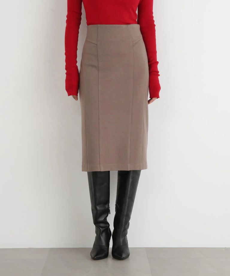 ウールスムースカッティングタイトスカート(モカ)アクリル / ストレッチあり / 裏地付き / 左ファスナー / 膝がすっぽり隠れる丈 / 0315220116