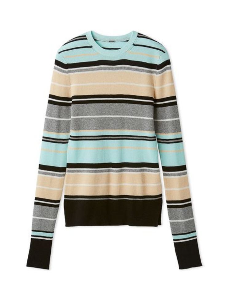 シアーラメクルーネックリブニット (BORDER) 綿 / シアー / サイド裾スリット / 手洗可 / 09WNT255308