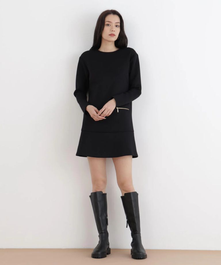 バイカラードッキングミニワンピース(ブラック)ポリエステル / ストレッチあり / 裏地無し / 後ファスナーあき / ひざより上の丈 / 0316140130