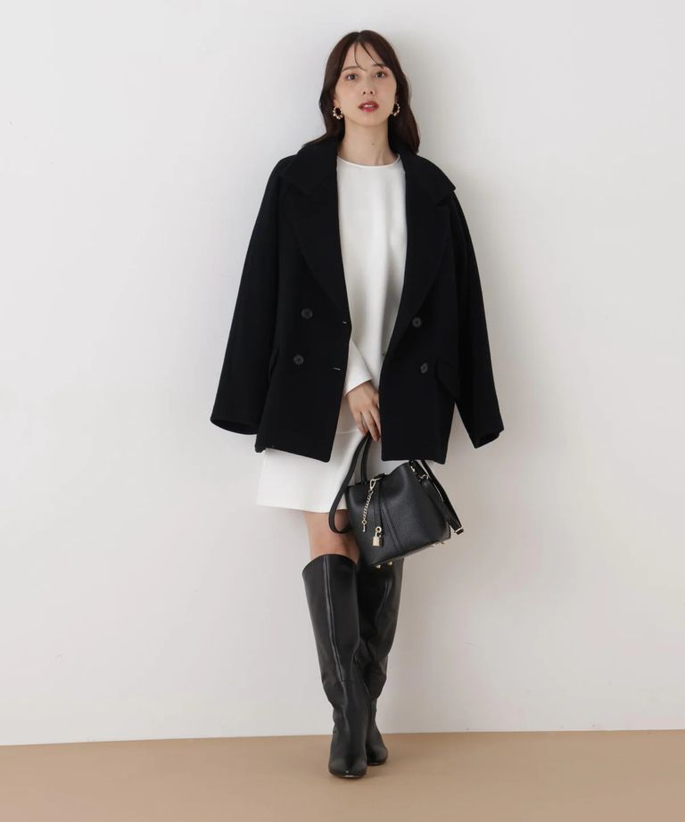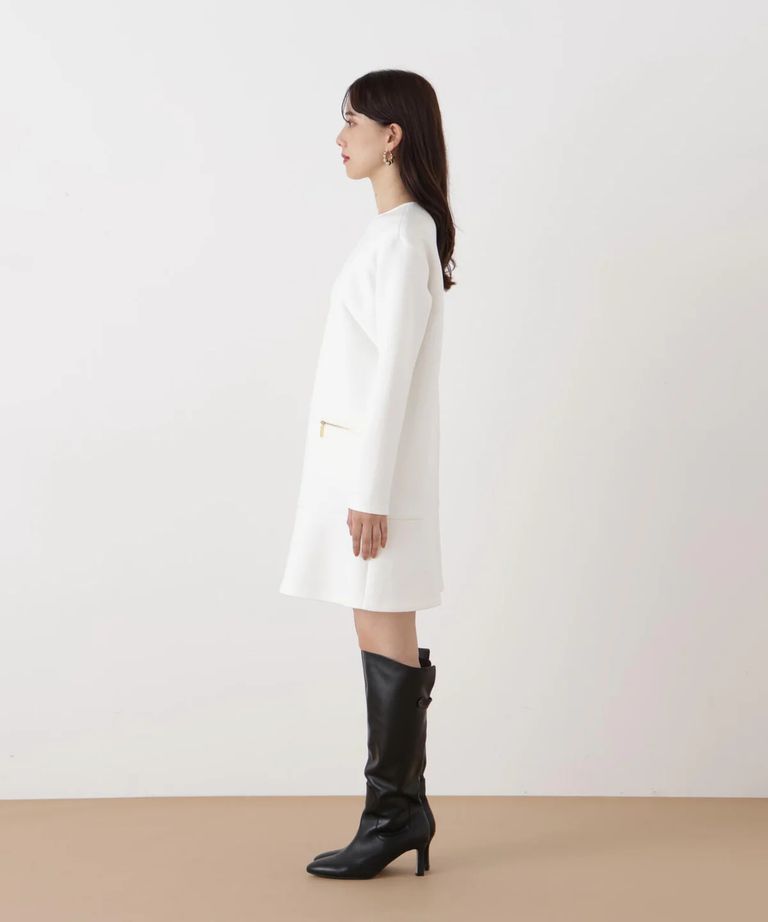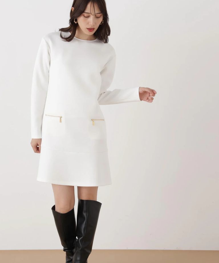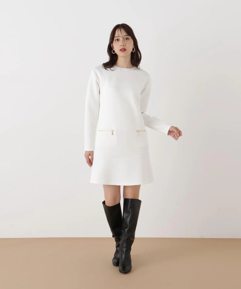 バイカラードッキングミニワンピース(ホワイト)ポリエステル / ストレッチあり / 裏地無し / 後ファスナーあき / ひざより上の丈 / 0316140130