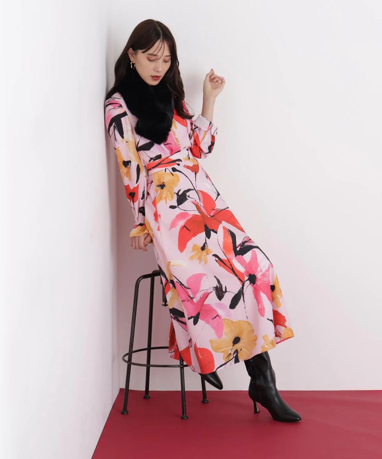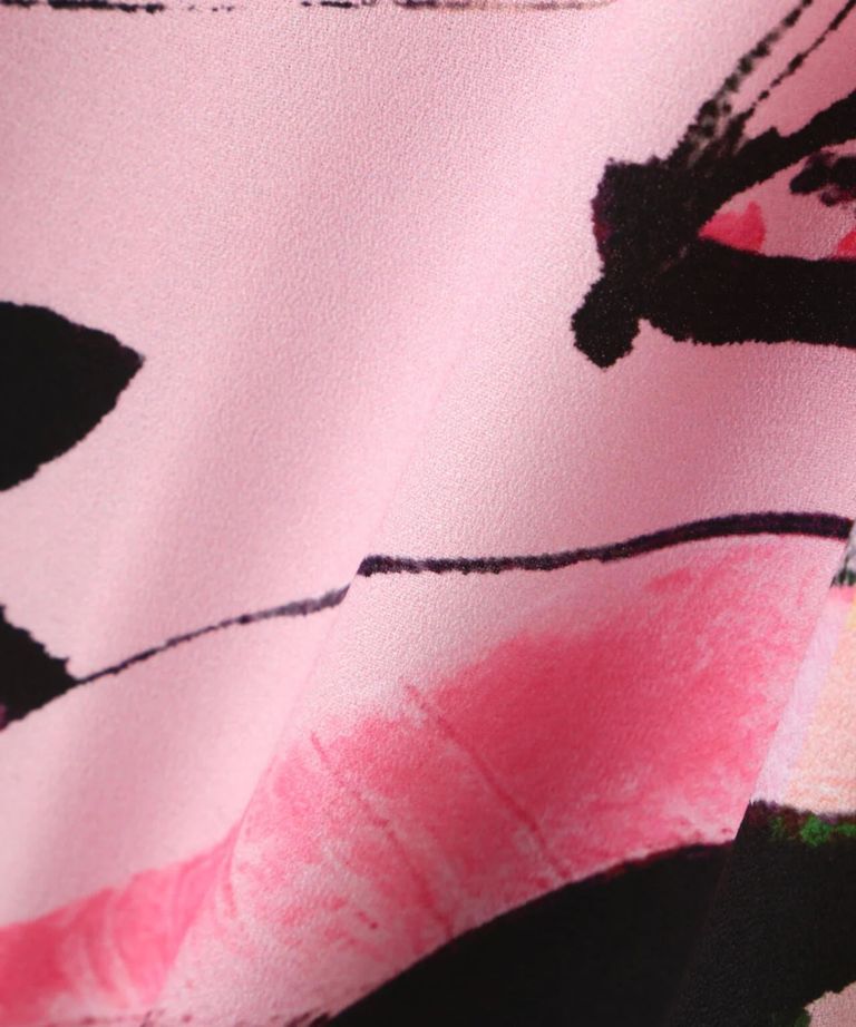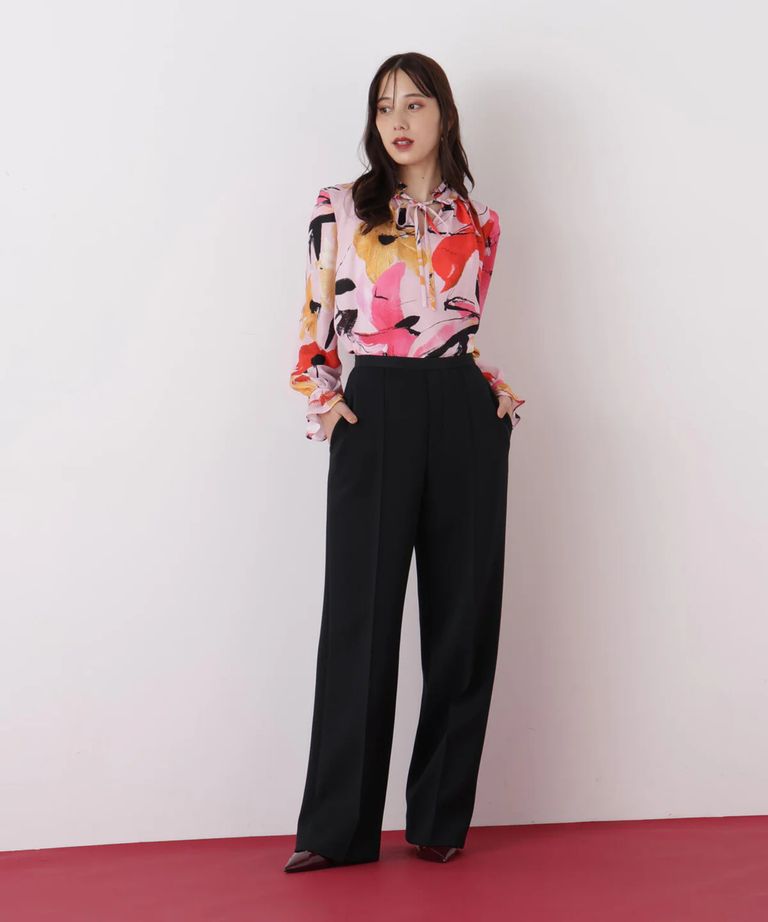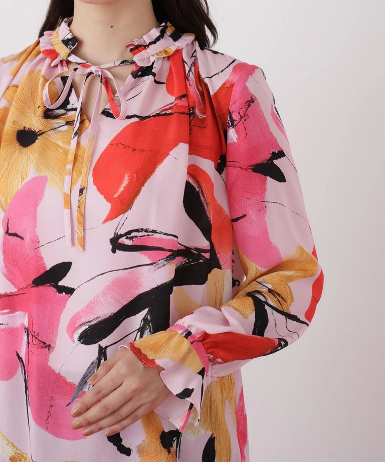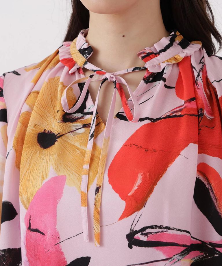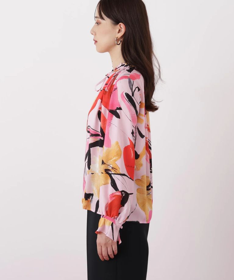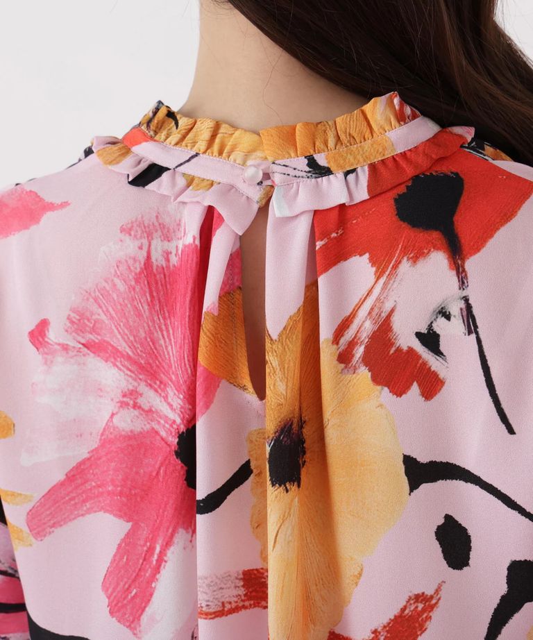 フラワープリントギャザーブラウス(ピンク系)ポリエステル / ストレッチ性無し / 裏無し / 後ろボタンあきありのかぶり / 0316110120