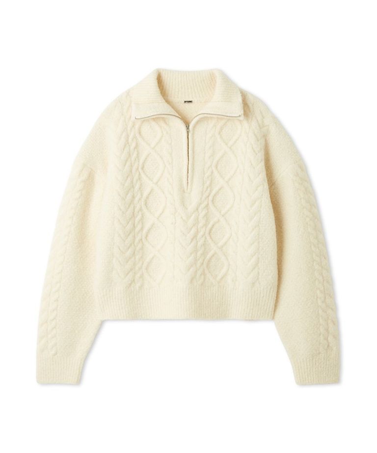 アランブークレーハーフジップニットプルオーバー ( IVR ) ウール / アラン柄 / 柔らかい / 短め丈 / 09WNT255065