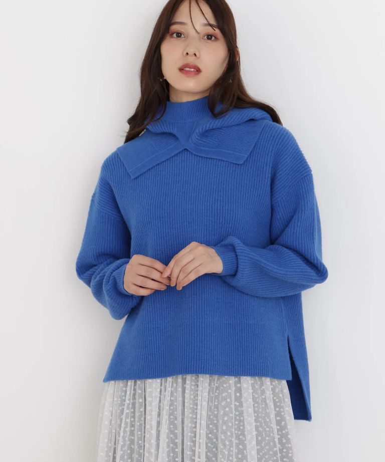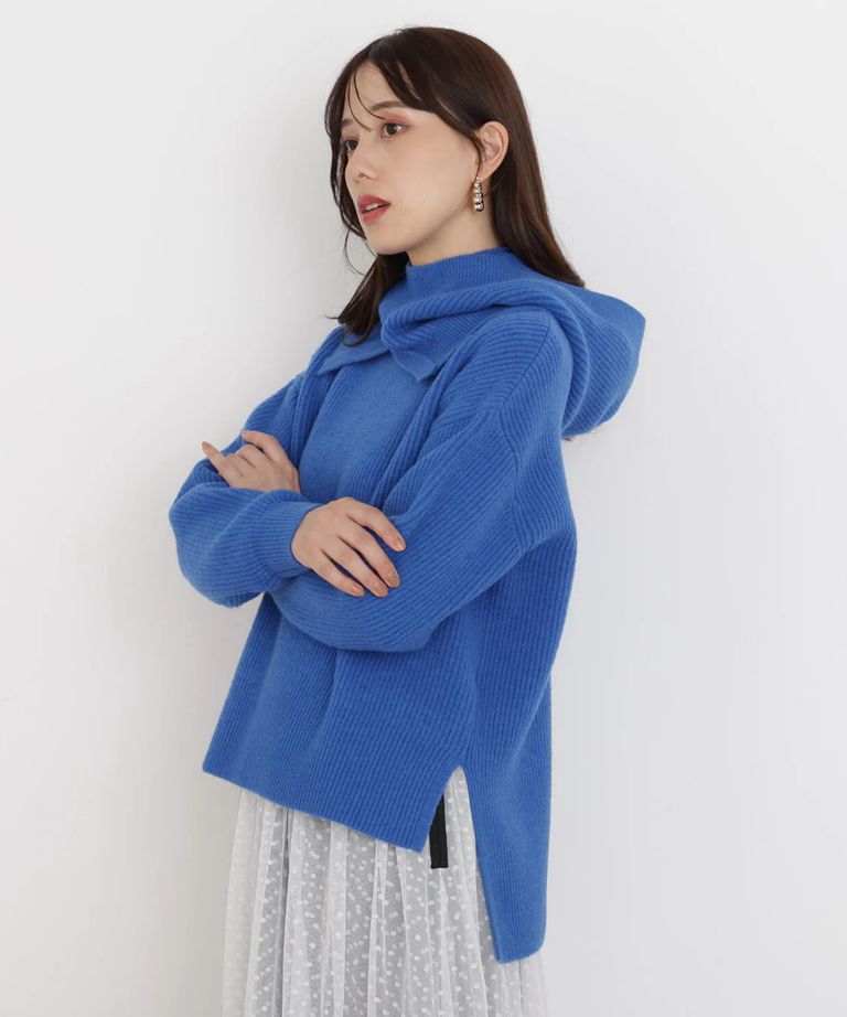 フードスヌード付きニットプルオーバー(ブルー)アクリル / ストレッチあり / かぶって着用 / スヌード付き/ 0316170131