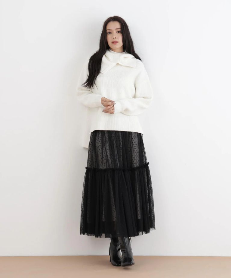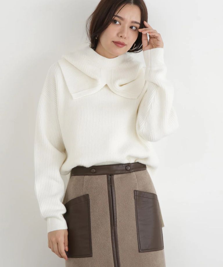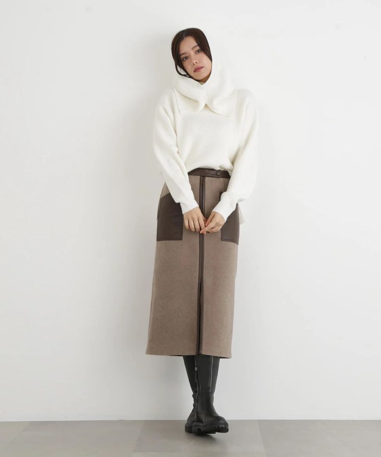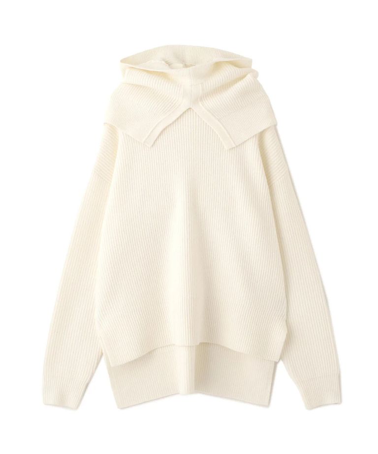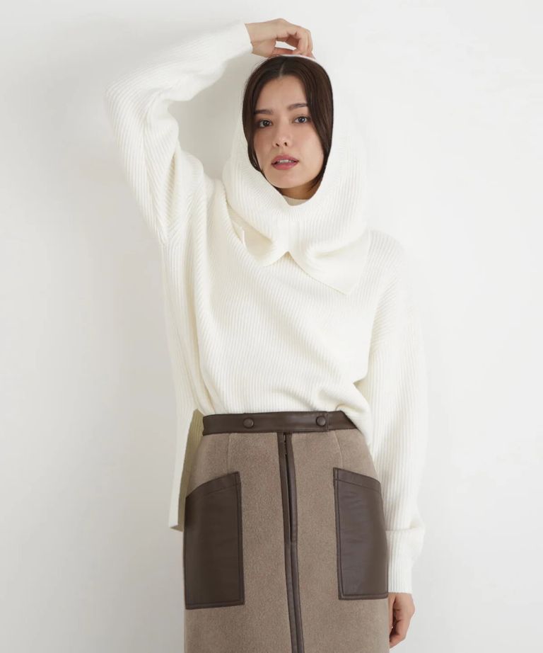 フードスヌード付きニットプルオーバー(ホワイト)アクリル / ストレッチあり / かぶって着用 / スヌード付き/ 0316170131