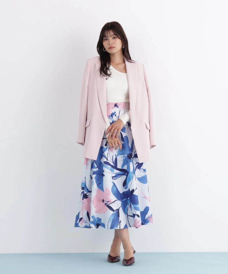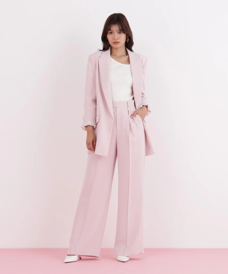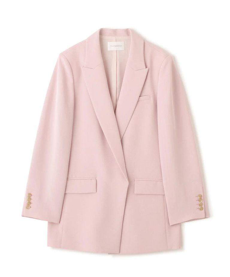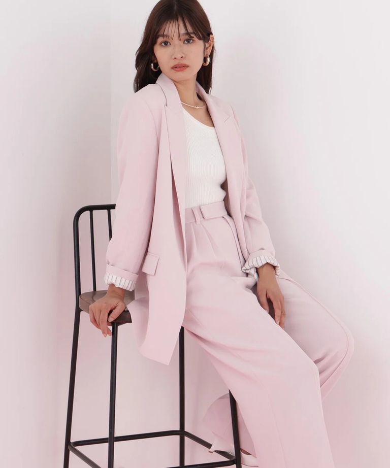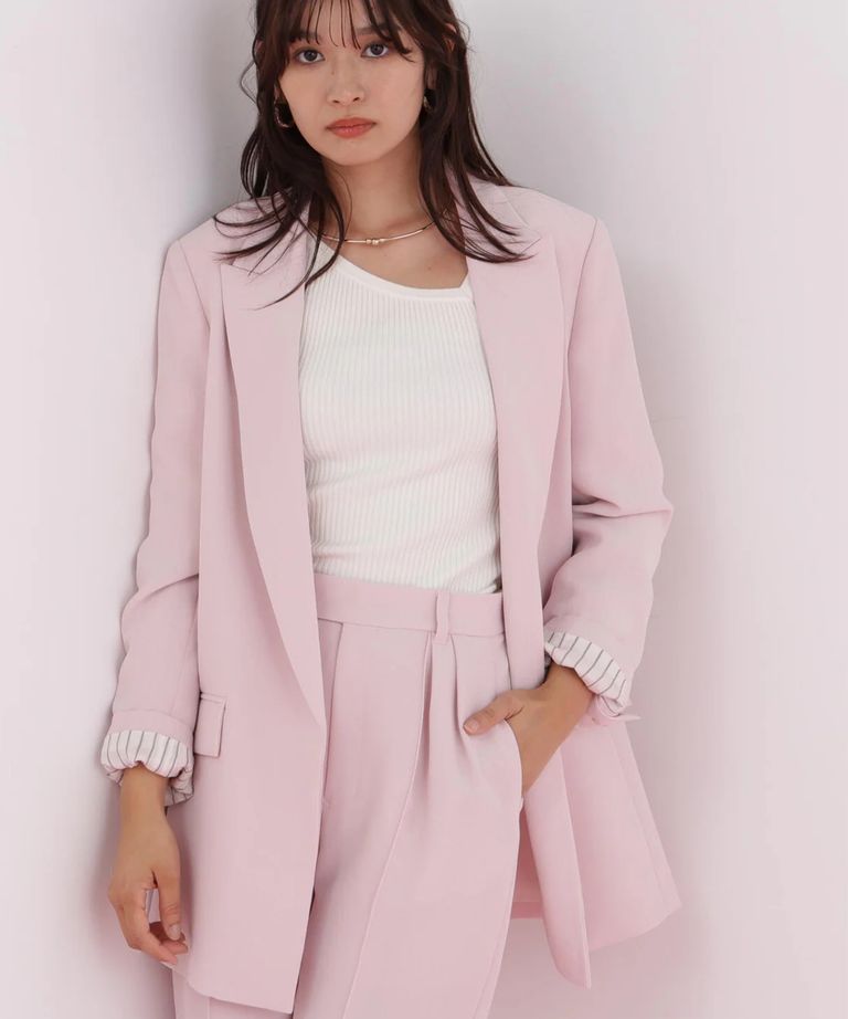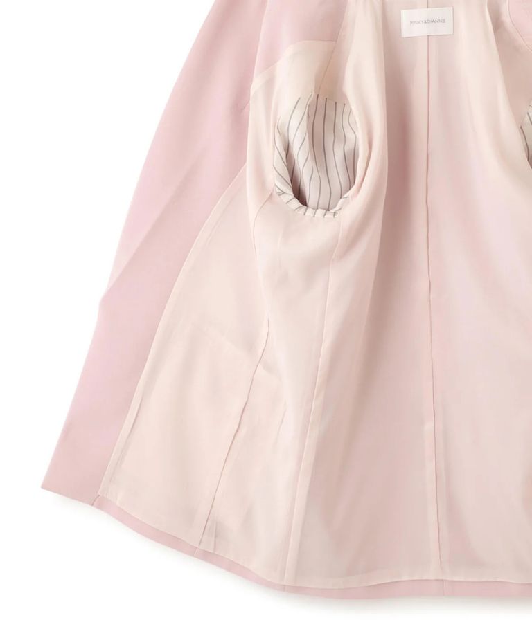 ストライプスリーブジャケット(フラミンゴピンク) ポリエステル / ストレッチ無し / 総裏 / ポケット×3/ 前あきは止めなし / 肩パットあり / 袖口は本あき / 0316150104