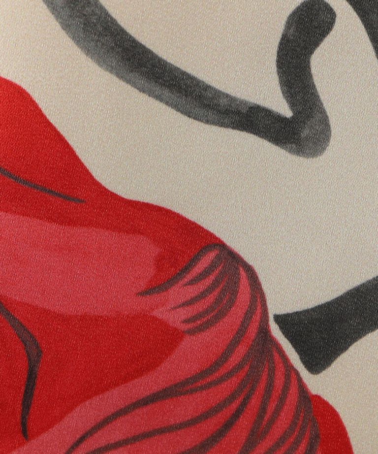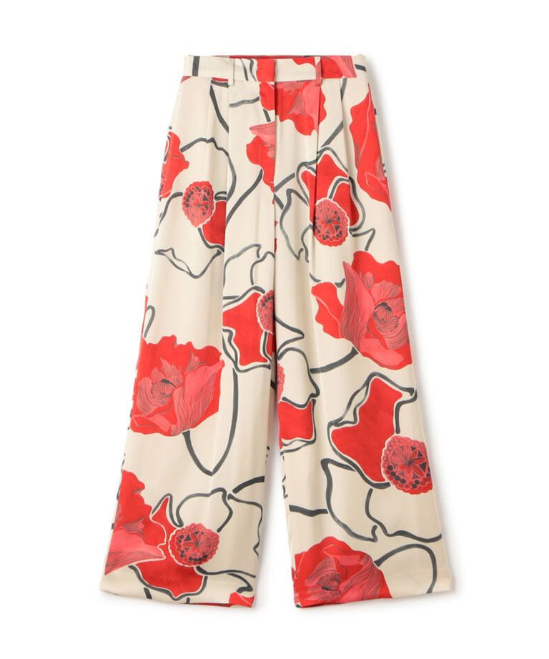 ポピープリント 2タックワイドパンツ (レッド系 ) ポリエステル / 裏地有り / ハイウエスト / 手洗可 / 11-04-61-04031